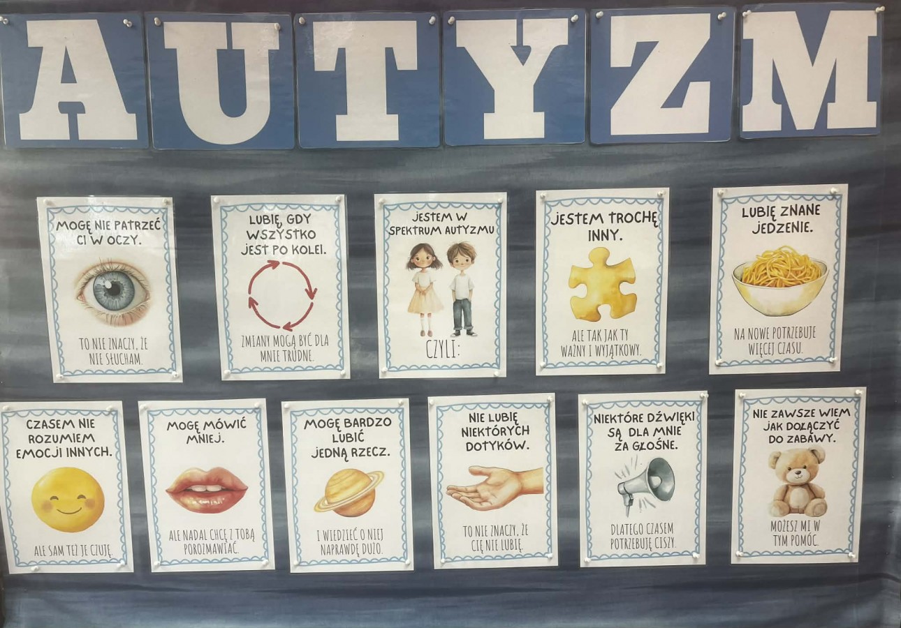 2 kwietnia to Światowy Dzień Autyzmu - w naszym przedszkolu, również go obchodziliśmy. Rozmawialiśmy o tym, że każdy z nas jest wyjątkowy i postrzega świat na swój sposób. Celem imprezy przedszkolnej „Pomaluj świat na niebiesko” było: * Kształtowanie postawy akceptacji i empatii, * zrozumienie, że ludzie różnią się między sobą, * rozwijanie umiejętności rozpoznawania emocji, * budowanie życzliwej atmosfery w społeczności przedszkolnej Nie zabrakło niebieskich akcentów - symbolu solidarności z osobami w spectrum autyzmu. Wysłuchaliśmy bajki „Niebieski balonik Antka”. Na koniec, wszystkie dzieci malowały niebieskim kolorem #ŚWIATOWY DZIEŃ AUTYZMU#RAZEM MOŻEMY WIĘCEJ#AKCEPTACJA#EMPATIA