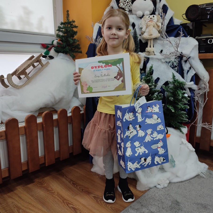 Miło nam poinformować, że praca wykonana przez Ewę K. z grupy "Krasnale" zajęła 1. miejsce w konkursie plastycznym „Moja ulubiona postać z bajki – Trzy małe świnki” (kategoria wiekowa 3-4 latki), organizowanym przez Miejskie Przedszkole nr 33 z Oddziałami Integracyjnymi im. j. Vanier w Płocku. Praca Ewci zachwyciła jury kolorami, dbałością o szczegóły i radosnym przedstawieniem bohaterów znanej bajki. To piękny sukces, który pokazuje, jak wspaniale rozwija swoje zdolności plastyczne. Cała społeczność przedszkola jest z niej bardzo dumna i trzyma kciuki za kolejne twórcze wyzwania.