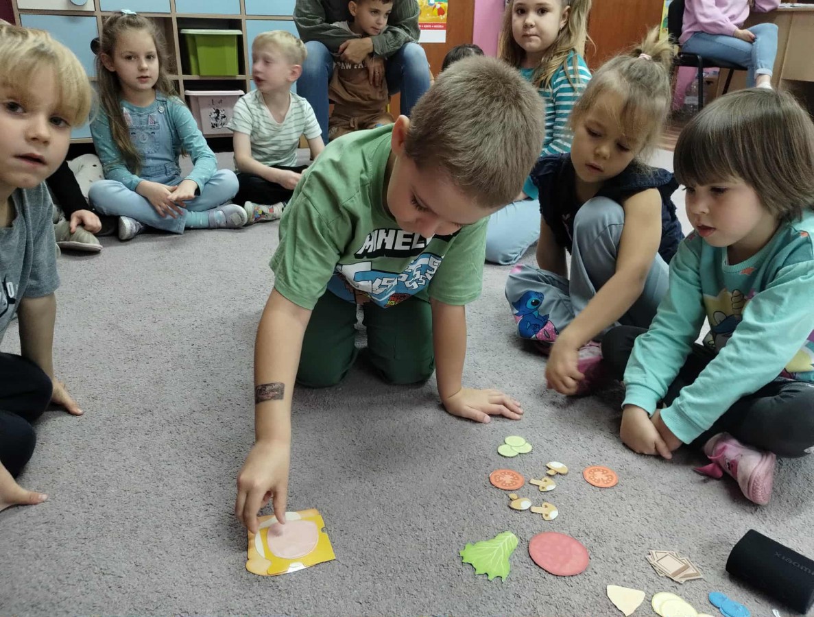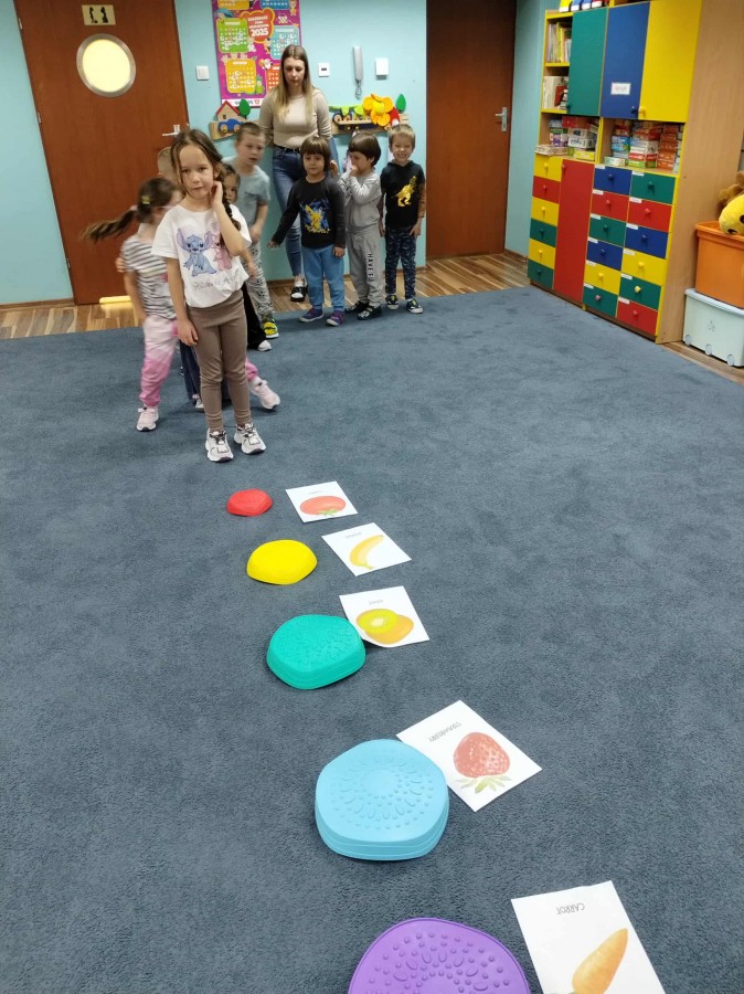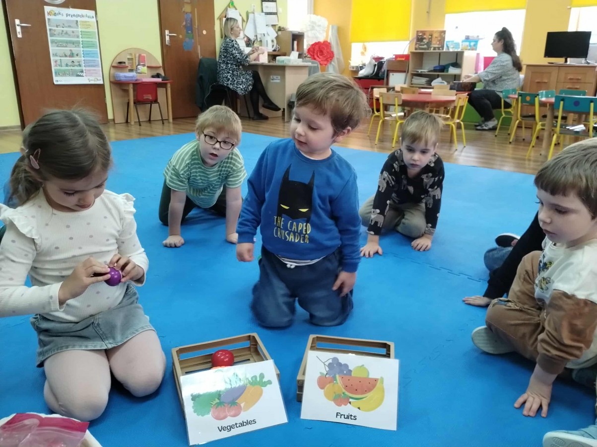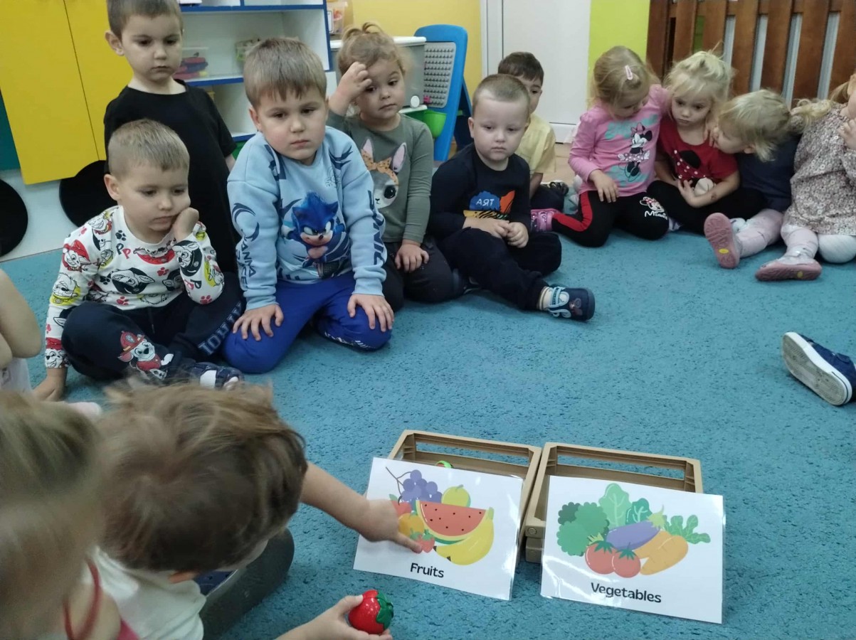 Dzieci potrafią się już przywitać, pożegnać oraz przedstawić, a także rozumieją i używają prostych zwrotów w codziennych sytuacjach. Wspólnie poznajemy nazwy owoców, warzyw, kolorów, zabawek i zwierząt, a wszystko to odbywa się w atmosferze zabawy i odkrywania.