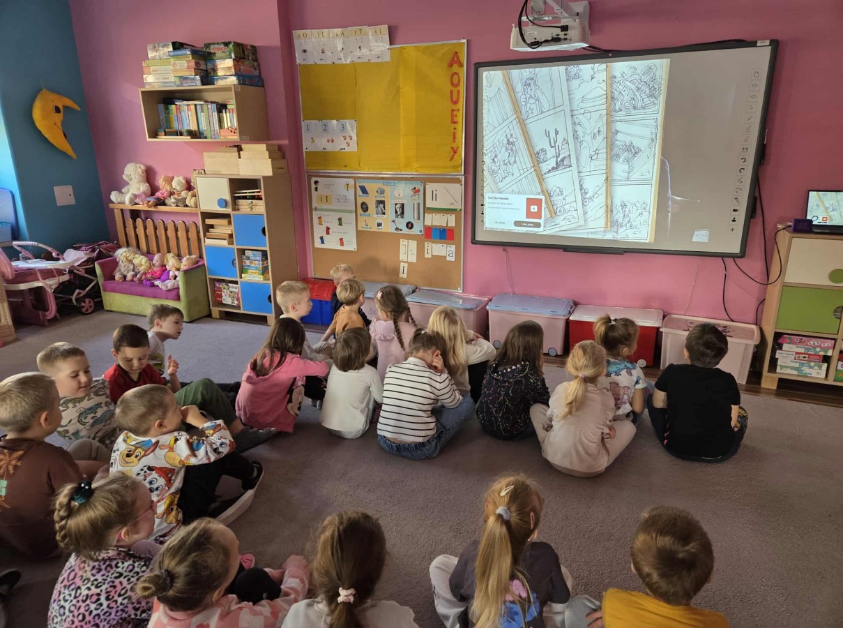 13 listopada grupa IV i V uczestniczyły w zajęciach " Kino w przedszkolu ". Tym razem dzieci dowiedziały się jak powstają filmy animacyjne i kreskówki. Miały okazję obejrzeć trudną pracę twórców ich ulubionych bajek. Dowiedziały się, że to co oglądają w postaci bajki to jest już końcowy efekt żmudnej pracy wielu ludzi.
