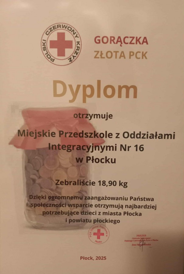 12 września odbyło się uroczyste podsumowanie akcji "Gorączki Złota" PCK 2025, w której nasze przedszkole brało udział. Celem akcji było wsparcie dzieci z rodzin w trudnej sytuacji.