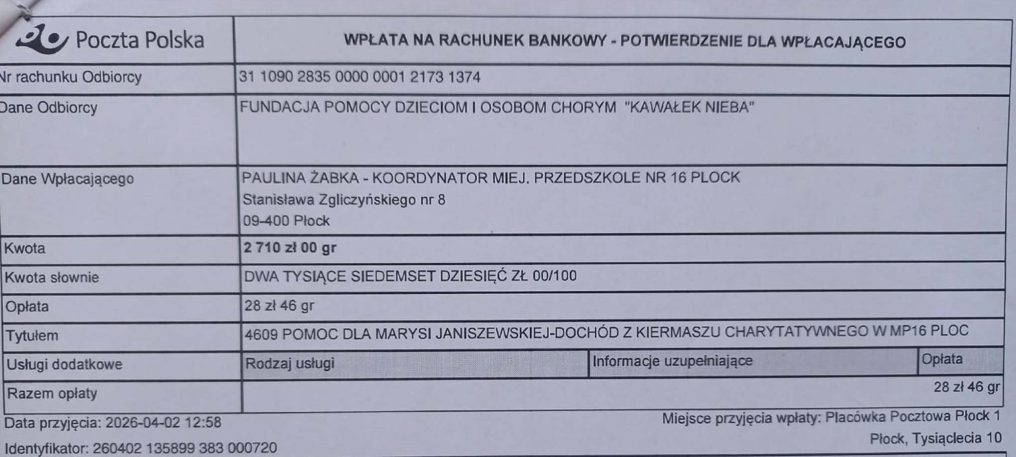 PS. W galerii znajduje się dowód wpłaty.