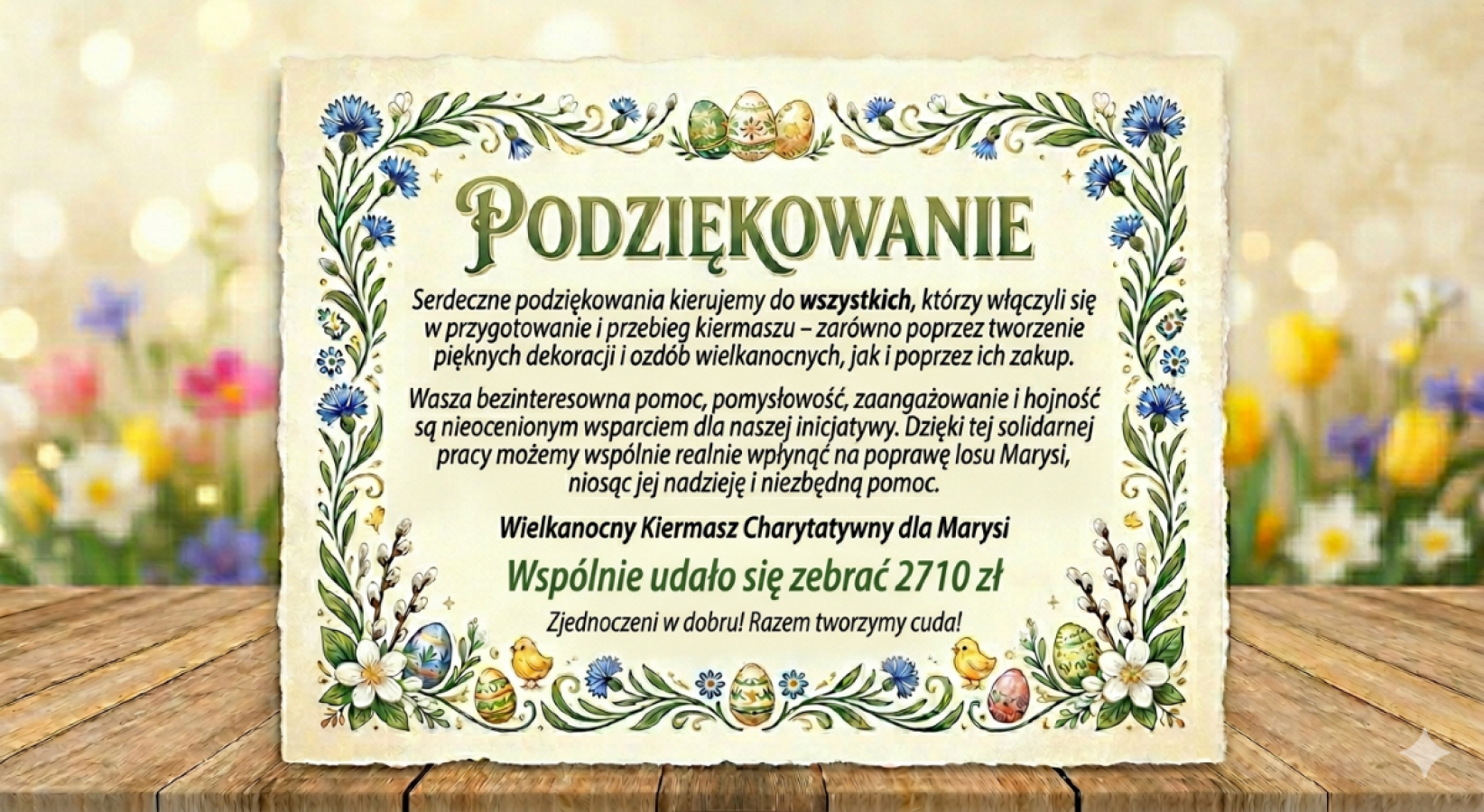 Wielkanocny Kiermasz Charytatywny dla Marysi – podziękowania i efekt zbiórki