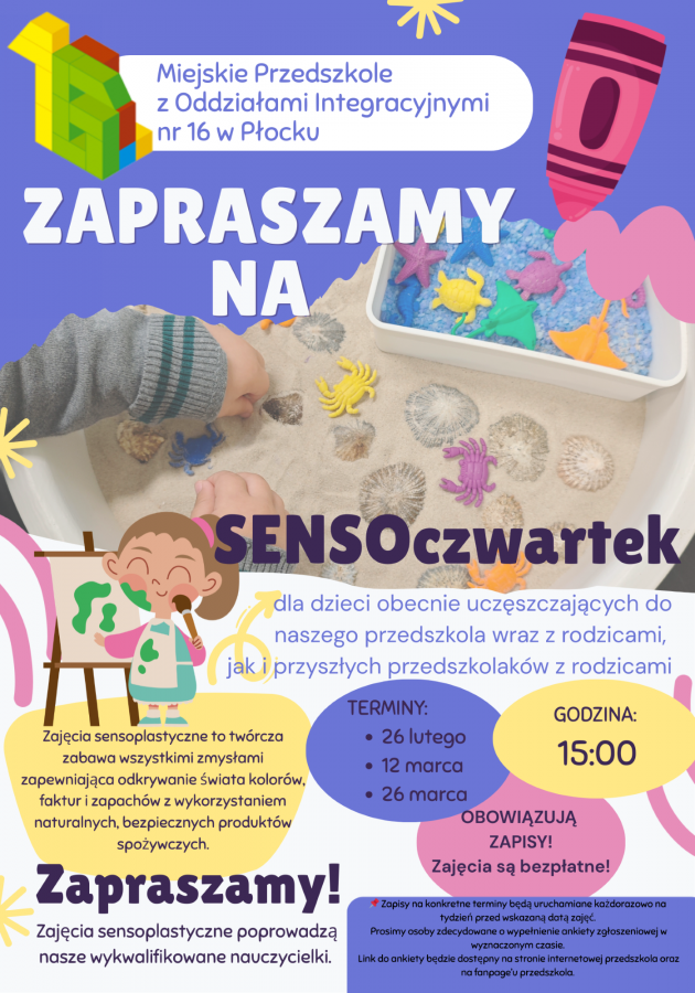 To czas swobodnego odkrywania, doświadczania i twórczej zabawy wszystkimi zmysłami – wspólnie, blisko i radośnie.