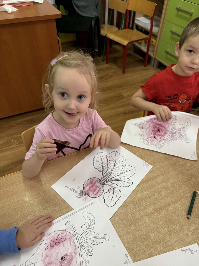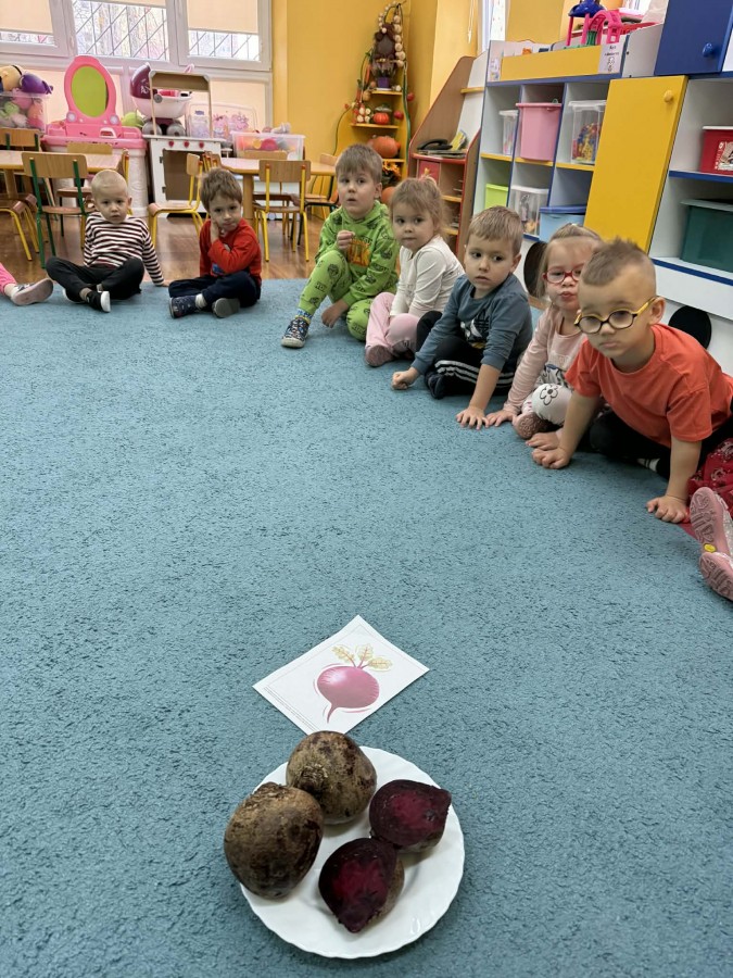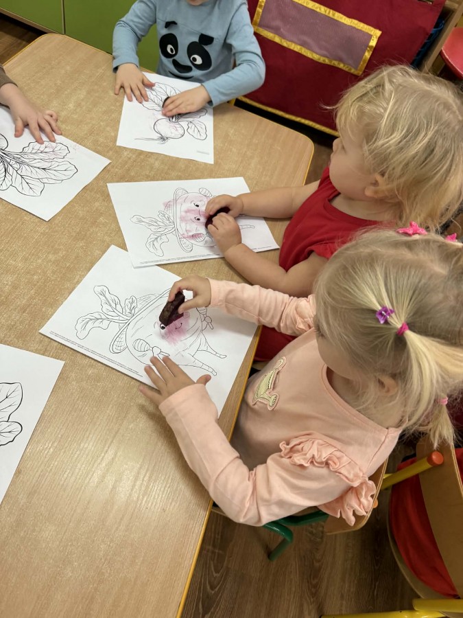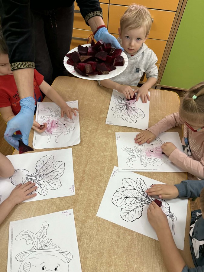 W ramach promocji zdrowia nasza grupa obchodziła Dzień Buraka. Dzieci poznały nie tylko walory odżywcze ale dowiedziały się również że można wykorzystać buraka do malowania