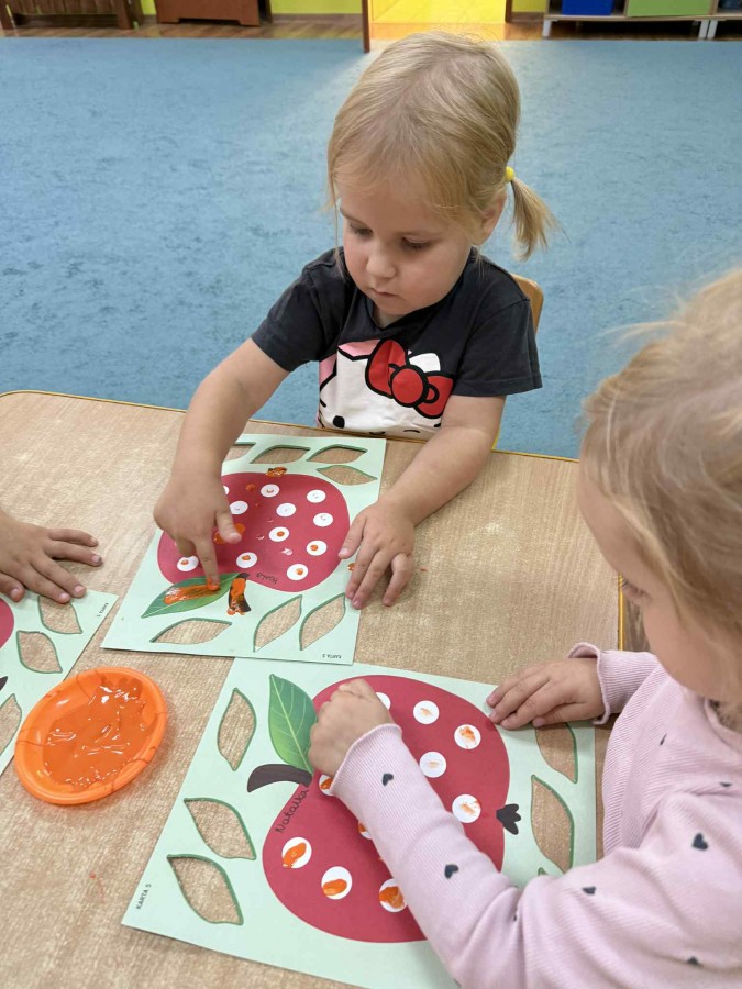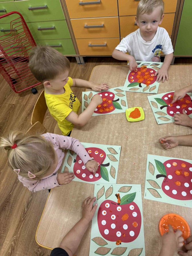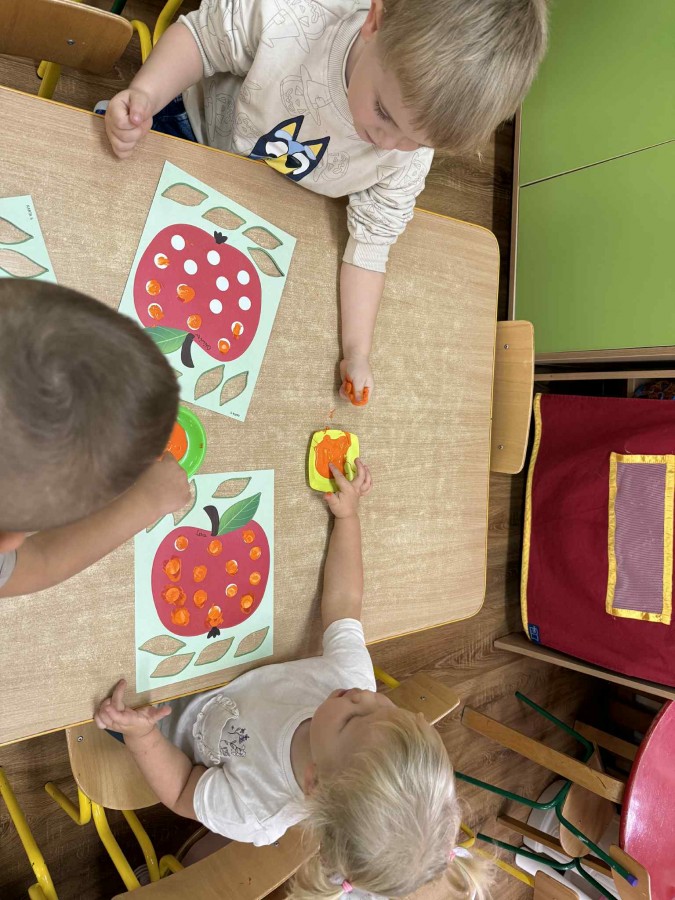 30.09.2025 w naszej grupie odbyły się zabawy plastyczne z okazji Dnia Jabłka. Dzieci bardzo starannie wykonały swoje prace