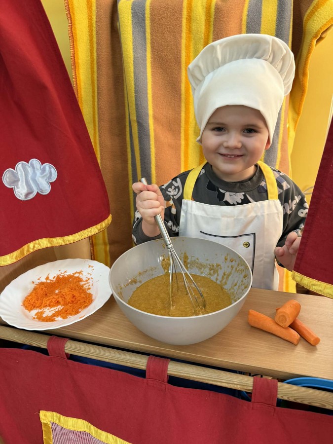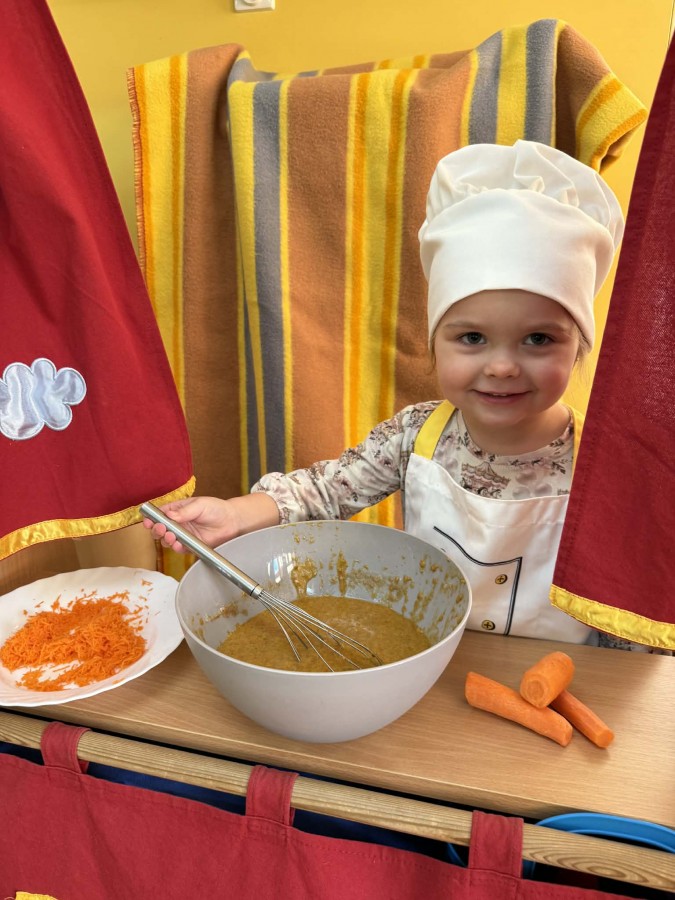 3 luty 2026 grupa maluszków świętowała dzień ciasta marchewkowego. Nasi mali kucharze świetnie poradzili sobie z tym wyzwaniem. Znali potrzebne nam składniki. Przy okazji zwiedziliśmy naszą przedszkolną kuchnię. Najtrudniejsze natomiast było oczekiwanie na ciasto, które dzieci zjadły jako dodatek do podwieczorku