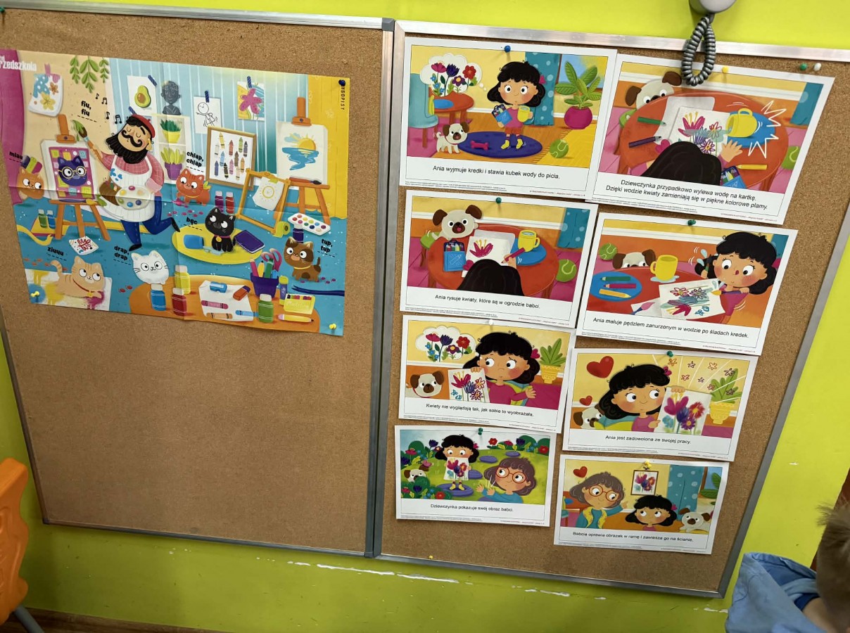 Dzień kredki to idealny czas na utrwalenie kolorów. Zadaniem Biedronek było wybranie swojego ulubionego koloru i starannie pokolorować kartę pracy. Wysłuchali również opowiadania o Kolorowych Kredkach oraz poznali Pracownię Malarza.
