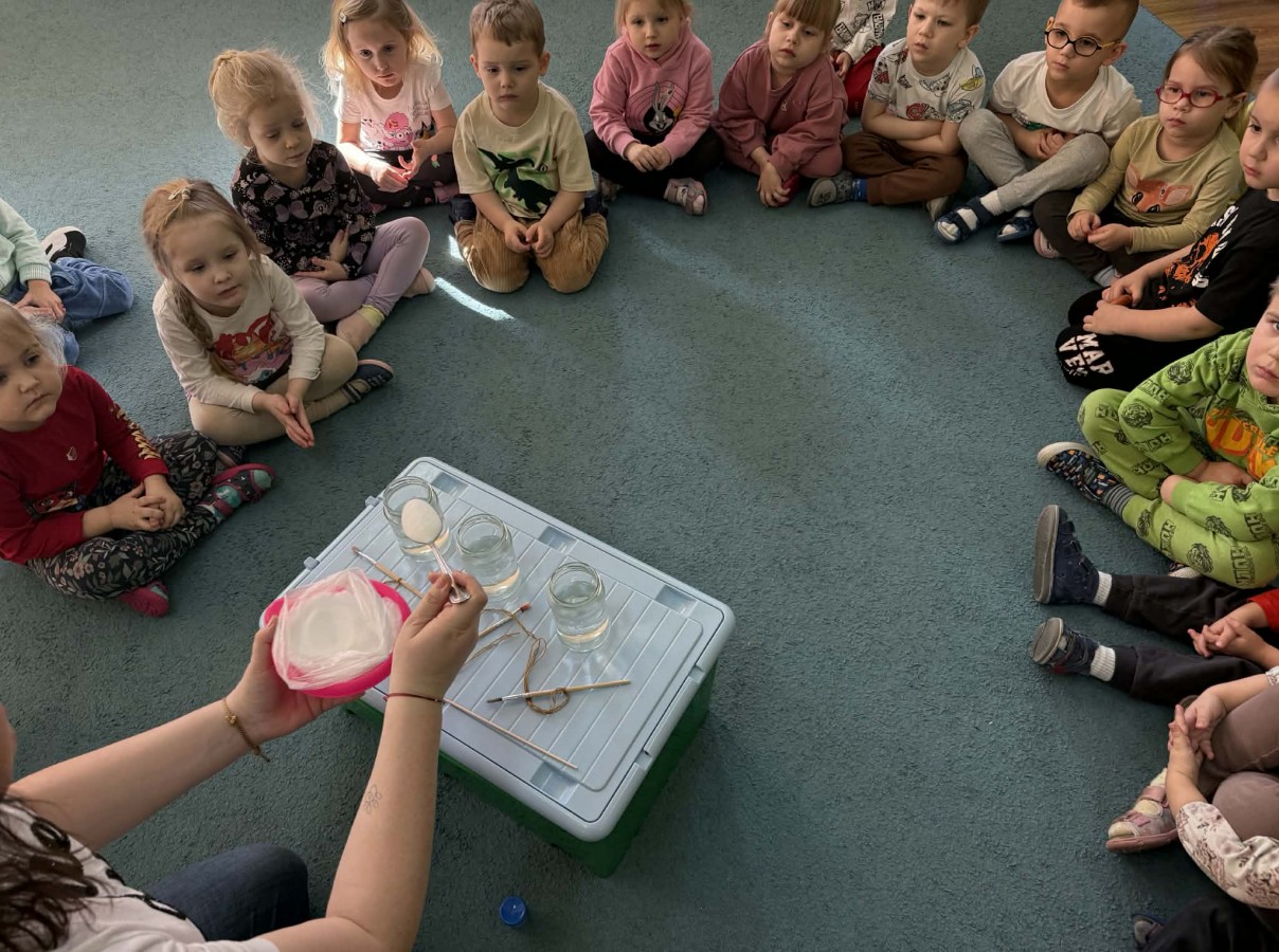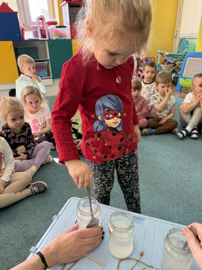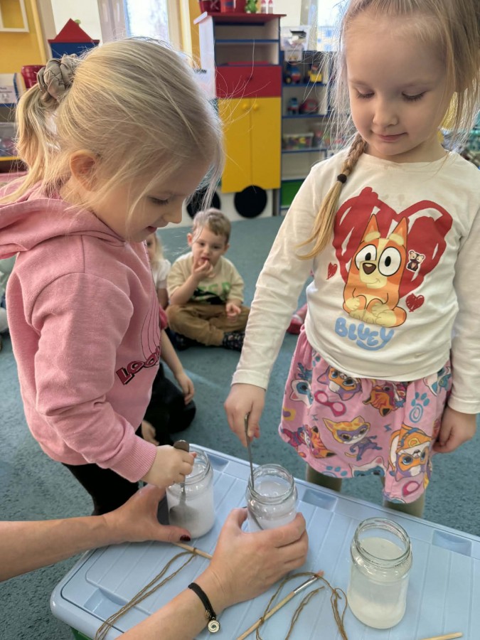 Biedronki bardzo lubią wszelkiego rodzaju zajęcia badawcze. Dziś przeprowadziliśmy doświadczenie z wykorzystaniem soli, włóczki, ciepłej wody, farby. Każdy etap doświadczenia dzieci z ciekawością obserwowały. Przed nami codzienne doglądanie efektów naszego eksperymentu.