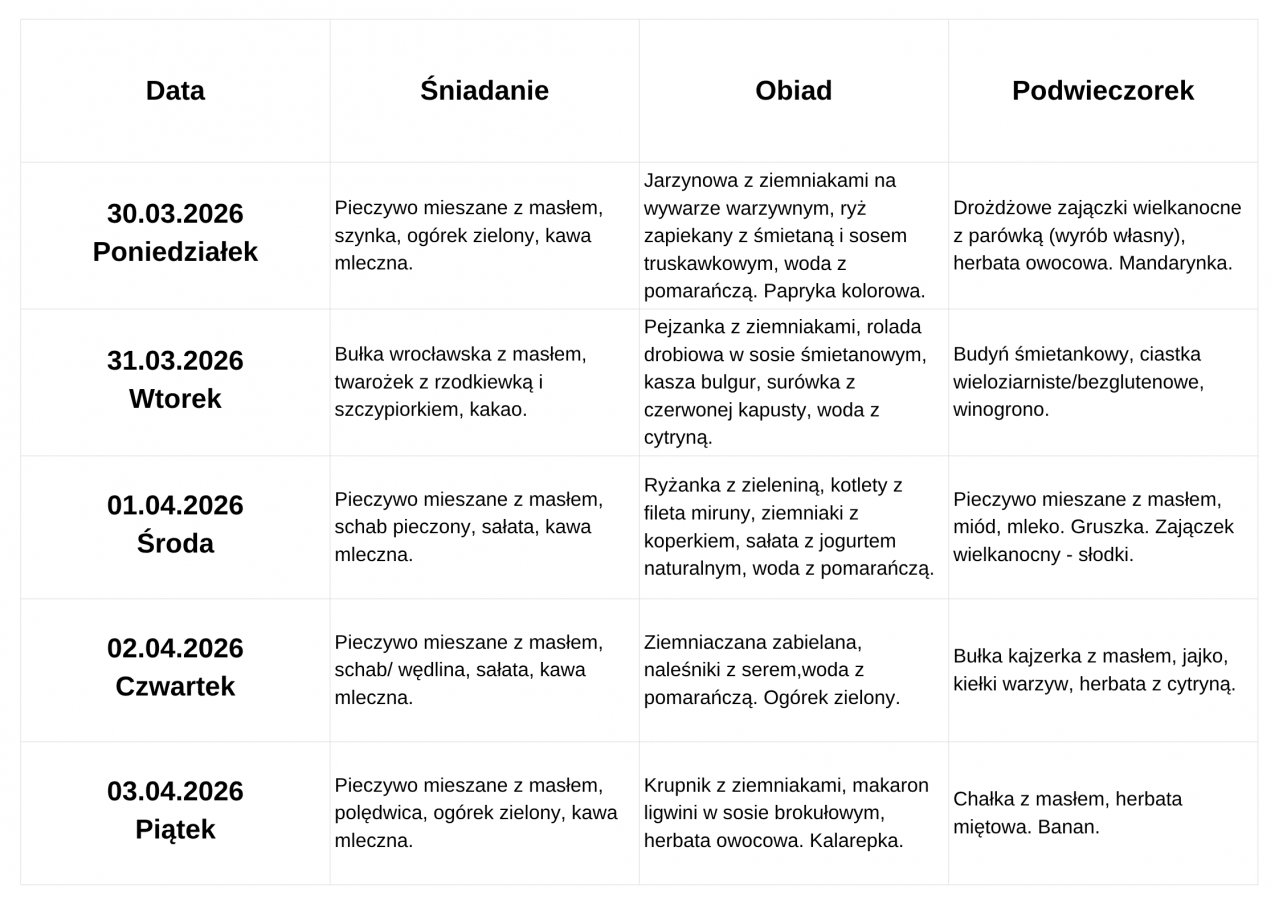 Okres: 30.03.2026 - 03.04.2026 Dieta: Podstawowa