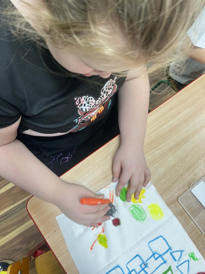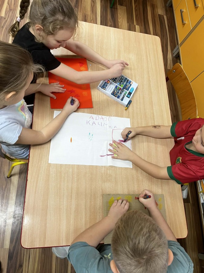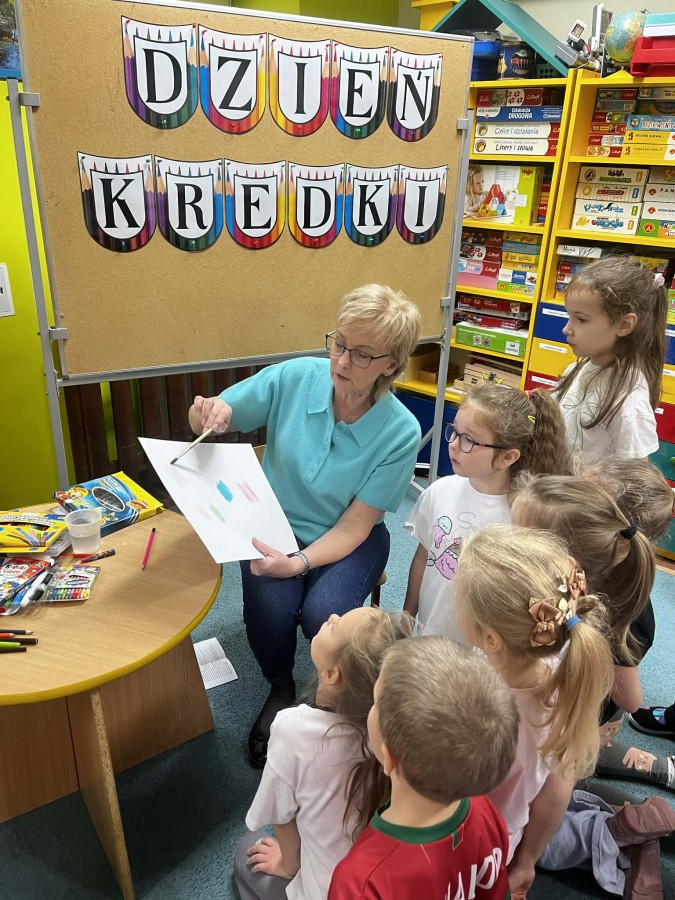 24 listopada w naszej grupie obchodziliśmy Dzień Kredki. Dzieci poznały historię powstania kredek oraz ich rodzaje. Najwięcej emocji dostarczyły kredki akwarelowe. Potem dzieci rysowały kredkami, ale na różnych powierzchniach: na płótnie, na grubym kartonie oraz na kartonie falistym. Była również zabawa ruchowa pt. „Kolory”. Każde z dzieci pokolorowało wg własnego pomysłu kontur kredki.