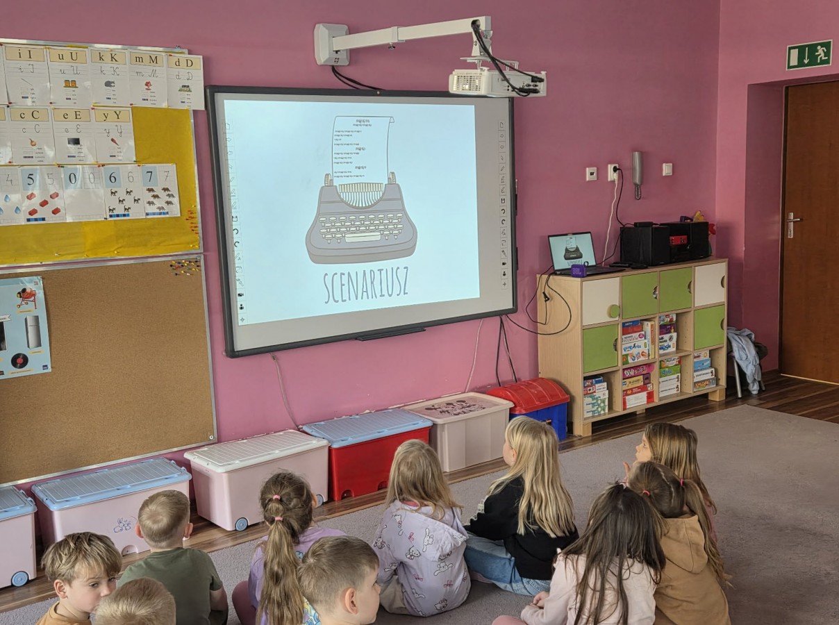 3 marca 2026r. dzieci z grupy IV i V w ramach zajęć - Kino w przedszkolu uczestniczyły w projekcji filmu edukacyjnego na dużym ekranie pt. " Poradnik młodego filmowca*. Dzieci dowiedziały się jak powstaje film, kolejne etapy oraz jak można go zrobić realizując swoje pomysły już od najmłodszych lat.