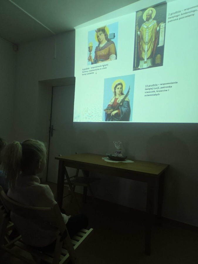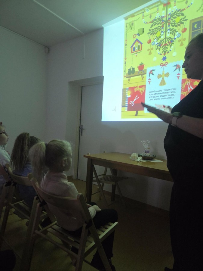 Tuż przed świętami, 19 grudnia, dzieci z naszej grupy były na wycieczce w Oddziale Etnograficznym Muzeum Mazowieckiego w Płocku - Spichlerz. Podczas spotkania przedszkolaki zapoznały się z tradycjami związanymi ze Świętami Bożego Narodzenia regionu Mazowsza. Z zainteresowaniem wysłuchały prelekcji, zadawały pytania, oglądały ręcznie robione ozdoby.
