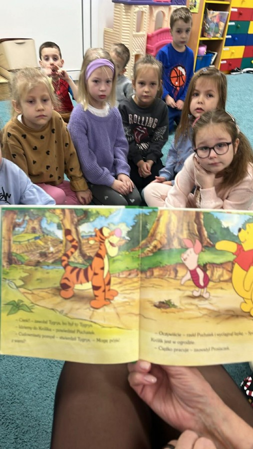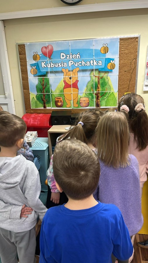 18 stycznia jest Międzynarodowym Dniem Kubusia Puchatka. Dzieci poznały historię powstania najbardziej popularnego misia na świecie. Następnie wysłuchały jednej z przygód małego misia pt. „Bardzo przepraszam”. Dzieci opowiedziały treść opowiadania oraz oceniły zachowanie przyjaciół Kubusia. Na koniec wszyscy z wielką radością wykonali rysunek najsympatyczniejszego misia na świecie.