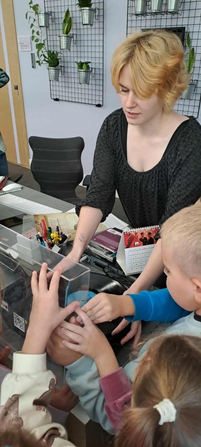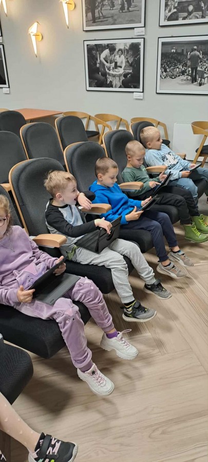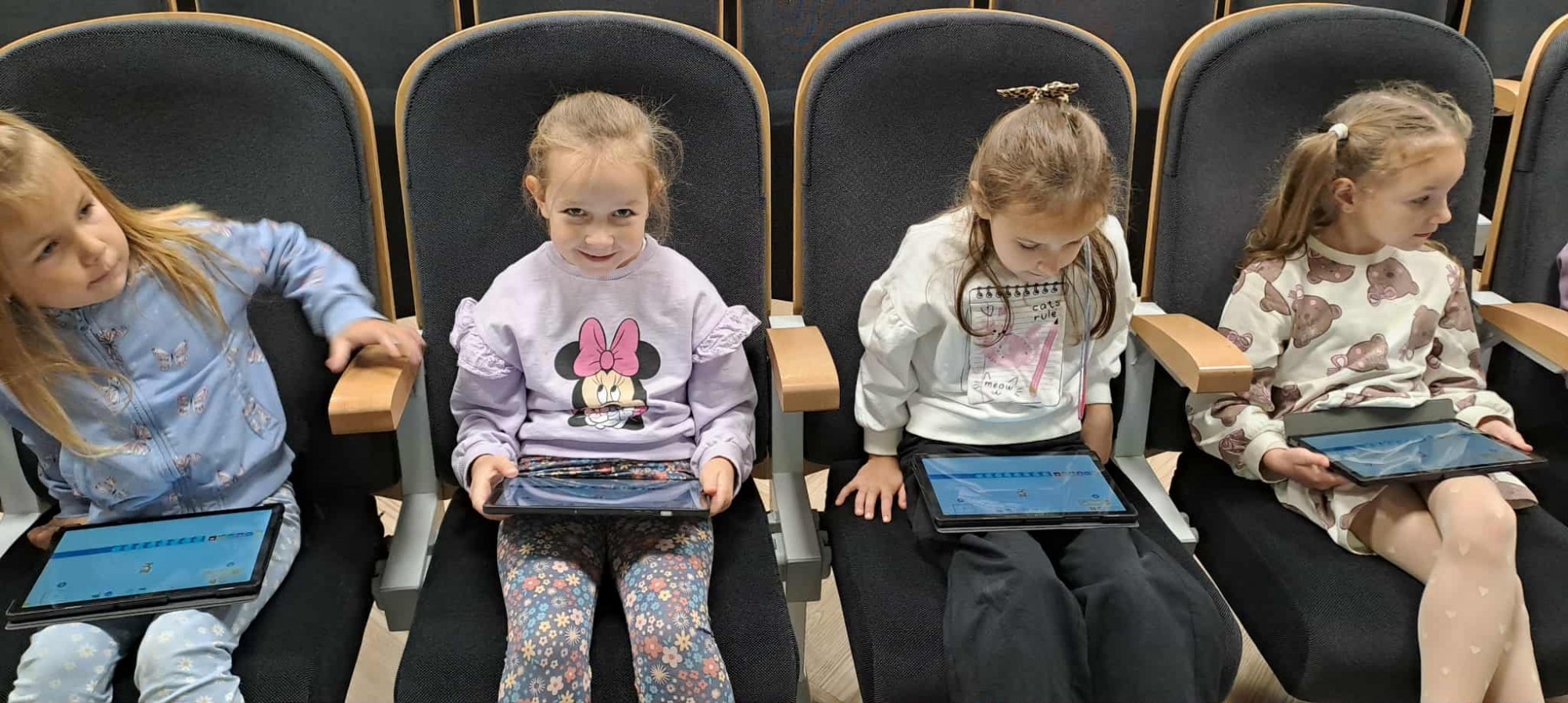 Potem z zainteresowaniem słuchały pani przewodnik, która omawiała program, w którym można stworzyć własne, interaktywne opowiadania i gry, łącząc zabawę z nauką. Każdy otrzymał tablet i zaczęła się samodzielna praca, która