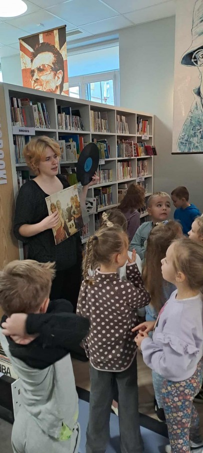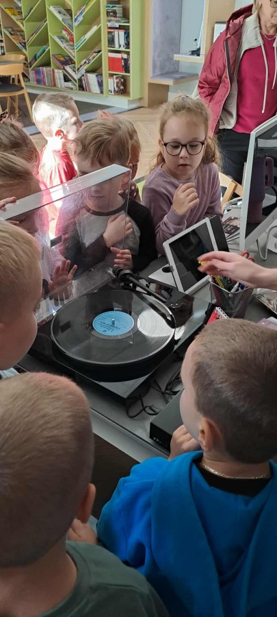 26 września wybraliśmy się po raz pierwszy do Mediateki eMki. Dzieci miały okazję zobaczyć miejsce, w którym wypożycza się płyty i komiksy. Największe zdziwienie wzbudził gramofon i płyta winylowa.