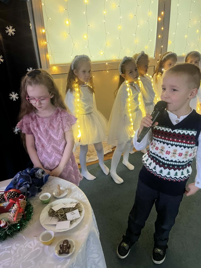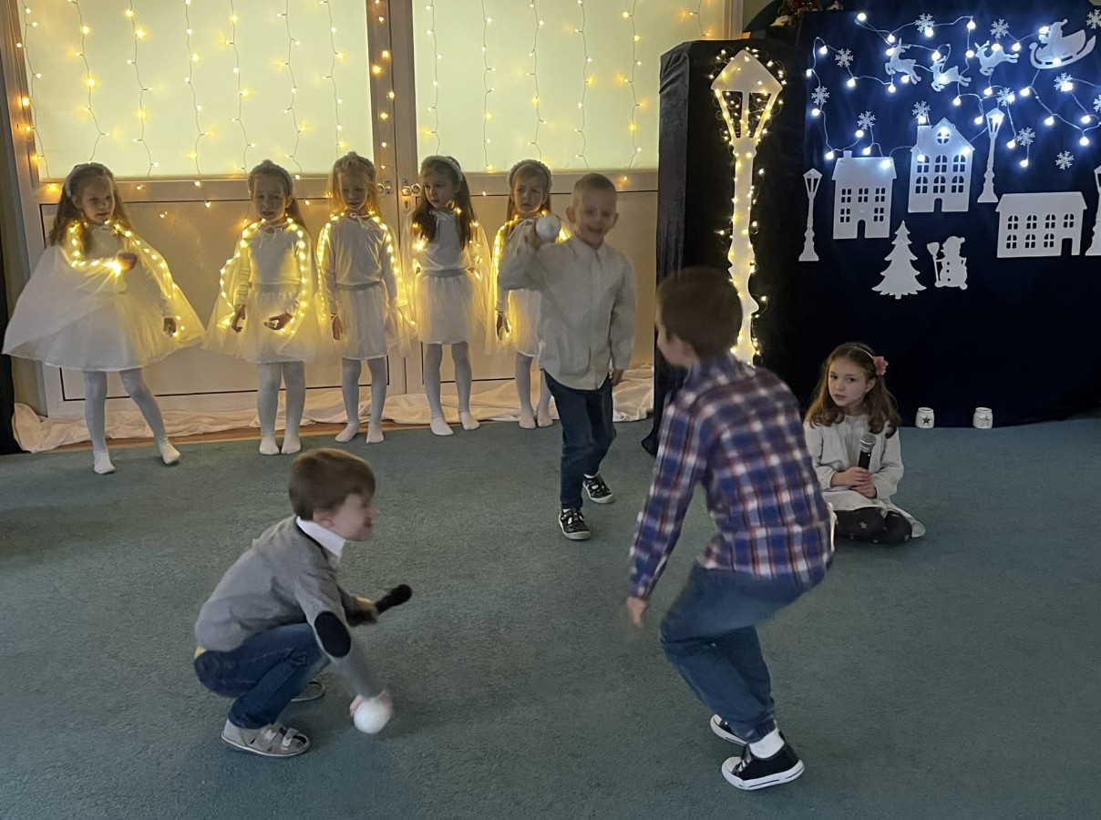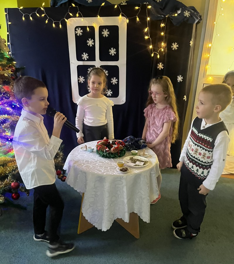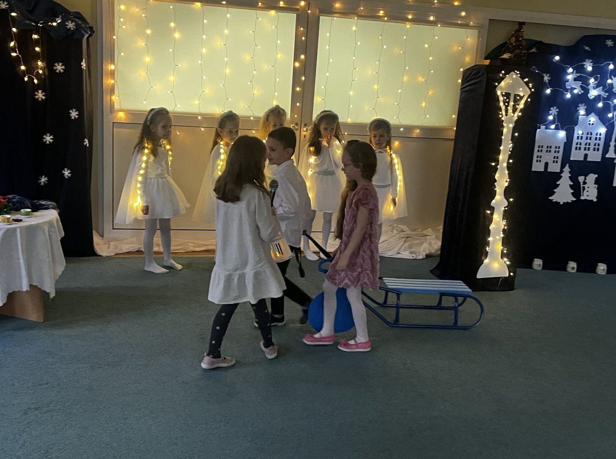 18 grudnia 2025 roku w grupie Jeżyków odbyło się świąteczne spotkanie z rodzicami. Głównym punktem programu było przedstawienie pt. „Dziewczynka z zapałkami”, przygotowane przez dzieci, które w piękny i wzruszający sposób wprowadziło wszystkich w nastrój Świąt Bożego Narodzenia. Mali artyści z wielkim zaangażowaniem zaprezentowali swoje role, za co zostali nagrodzeni gromkimi brawami.