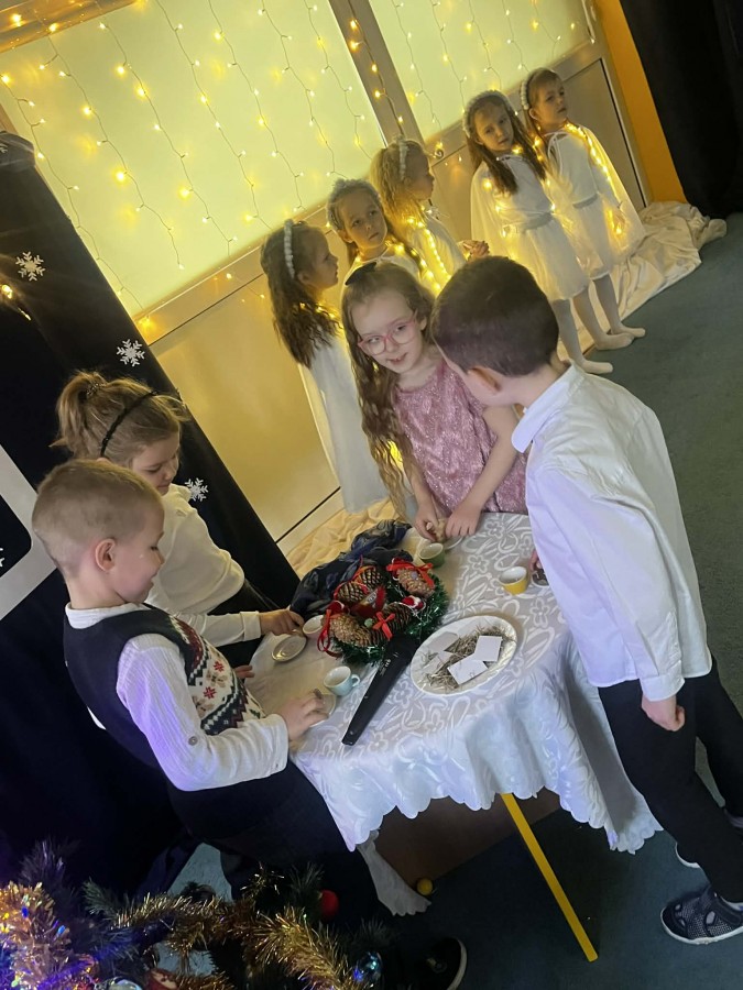 Po części artystycznej odbył się słodki poczęstunek, podczas którego rodzice i dzieci mogli spędzić wspólnie czas, porozmawiać oraz cieszyć się świąteczną atmosferą. Spotkanie było okazją do integracji, wzmacniania więzi oraz wspólnego przeżywania wyjątkowych, przedświątecznych chwil