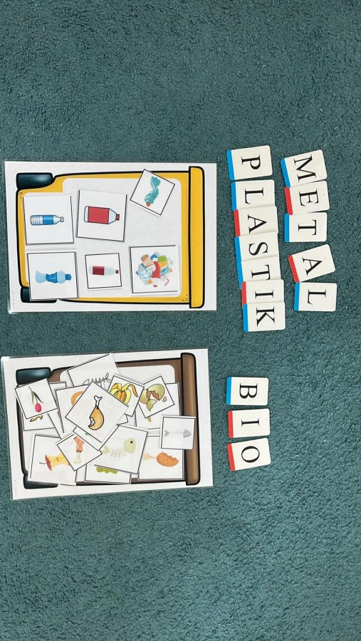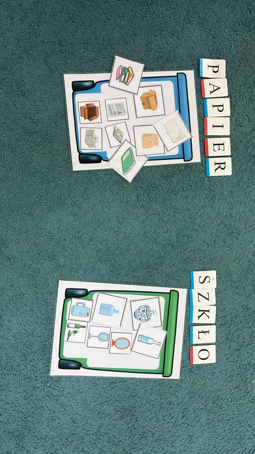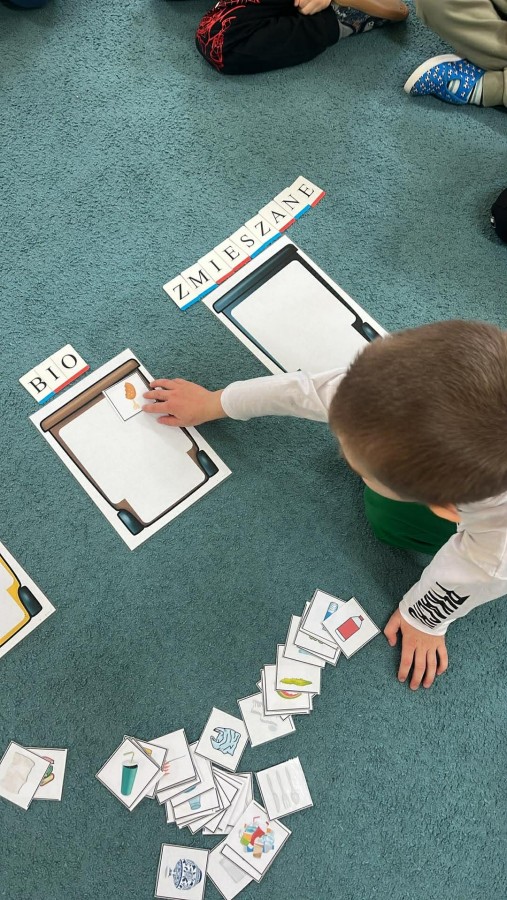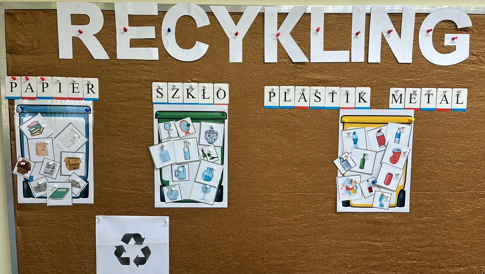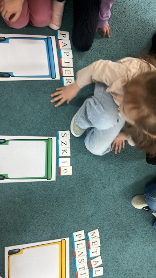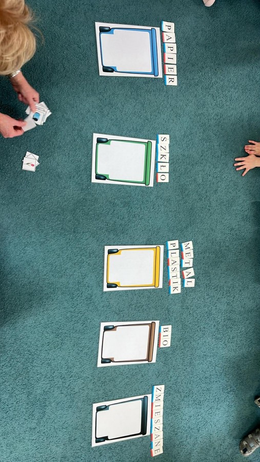 18 marca na całym świecie obchodzony jest Światowy Dzień Recyklingu. Na zajęciu dzieci dowiedziały się co to jest recykling. Recykling to wykorzystanie materiałów, z których wykonane są niektóre odpady. Dzięki ponownemu wykorzystaniu odpadów duża część śmieci może, zamiast na wysypisko, trafiać ponownie do użytku. Ale żeby można było recyklingować odpady, trzeba je najpierw odpowiednio segregować. Teraz dzieci miały okazję wykazać się znajomością kolorów pojemników do segregacji odpadów. Samodzielnie układały podpisy do poszczególnych pojemników i segregowały śmieci. W trakcie rozmowy dowiedziały się, co to są elektryczne śmieci i gdzie je trzeba wyrzucać. To był ważny dzień – dzieci zdobyły cenną wiedzą na temat: „Dlaczego segregowanie odpadów jest takie ważne?”