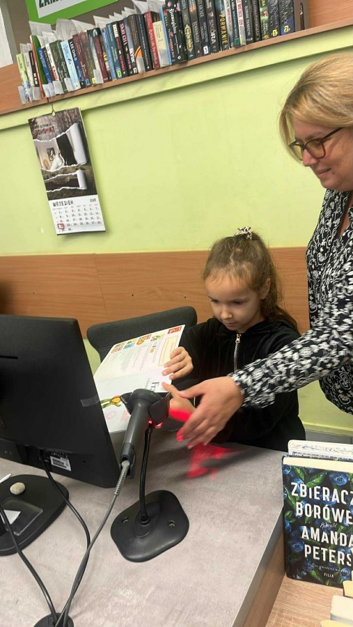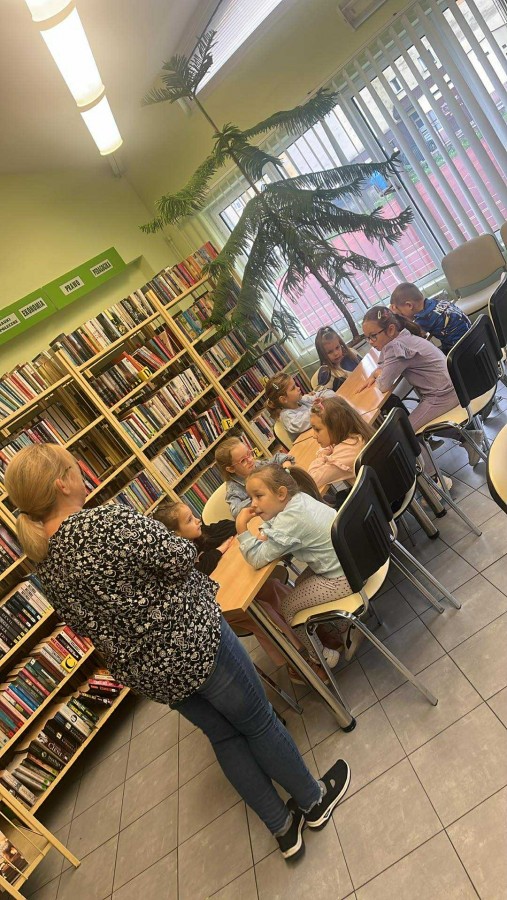 22 września odwiedziliśmy Książnicę Płocką – filię nr 5. Pani Sylwia oprowadziła dzieci po bibliotece jednocześnie omawiając w jaki sposób są segregowane książki. Dzieci dowiedziały się w jaki sposób wypożycza się książki. Miały okazję samodzielnie zeskanować kod kreskowy, który posiada każda pozycja.