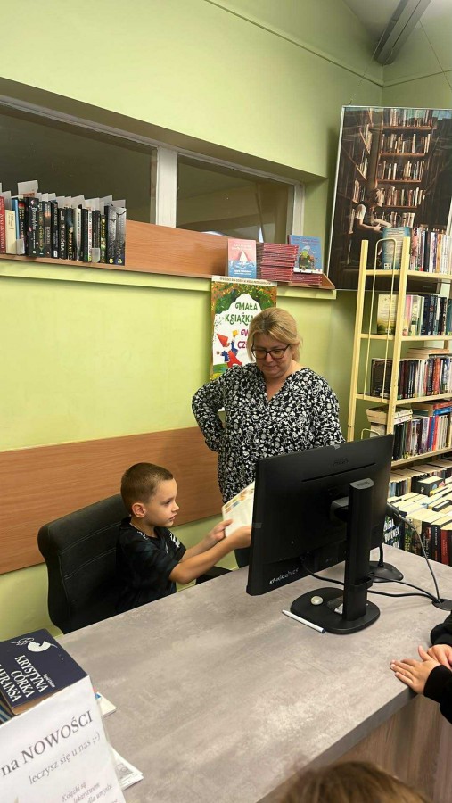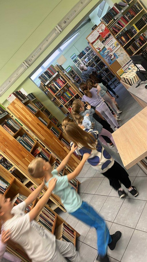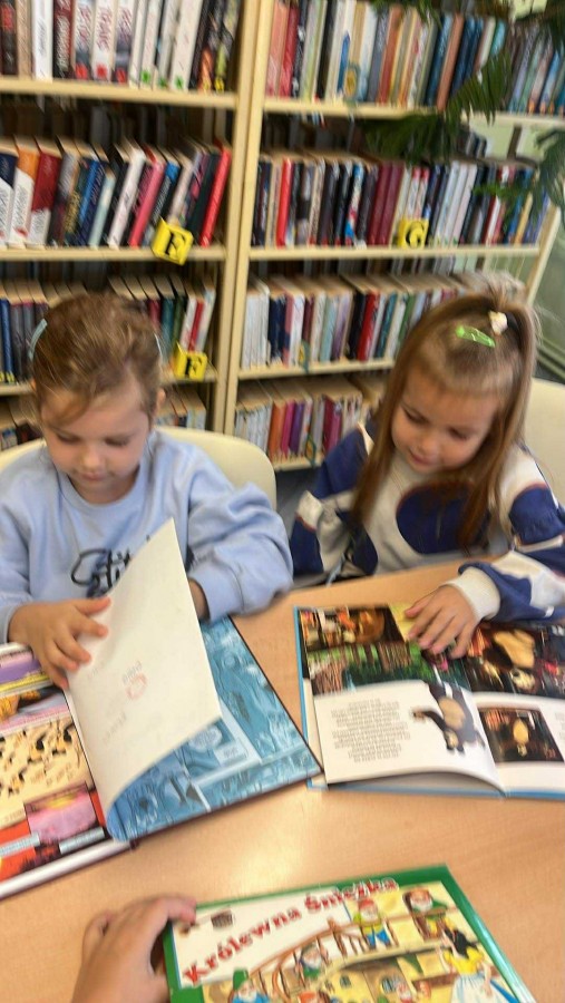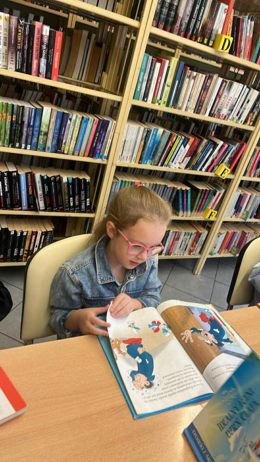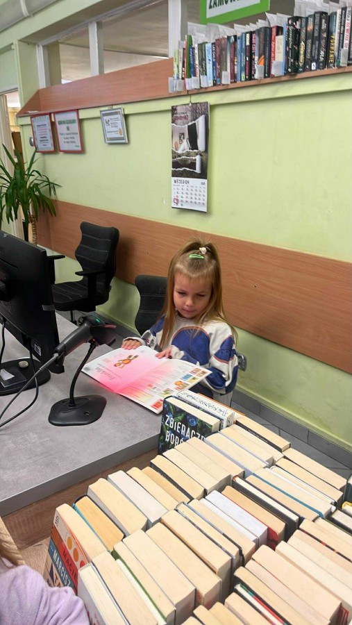 Pani Sylwia zachęcała dzieci aby odwiedzili bibliotekę z rodzicami i wypożyczali książki do wspólnego czytania.