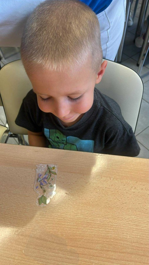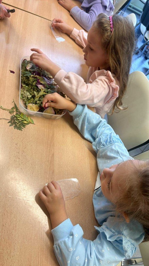Na koniec wszyscy wykonali własną zakładkę do książki wykorzystując zasuszone kwiatki i listki.