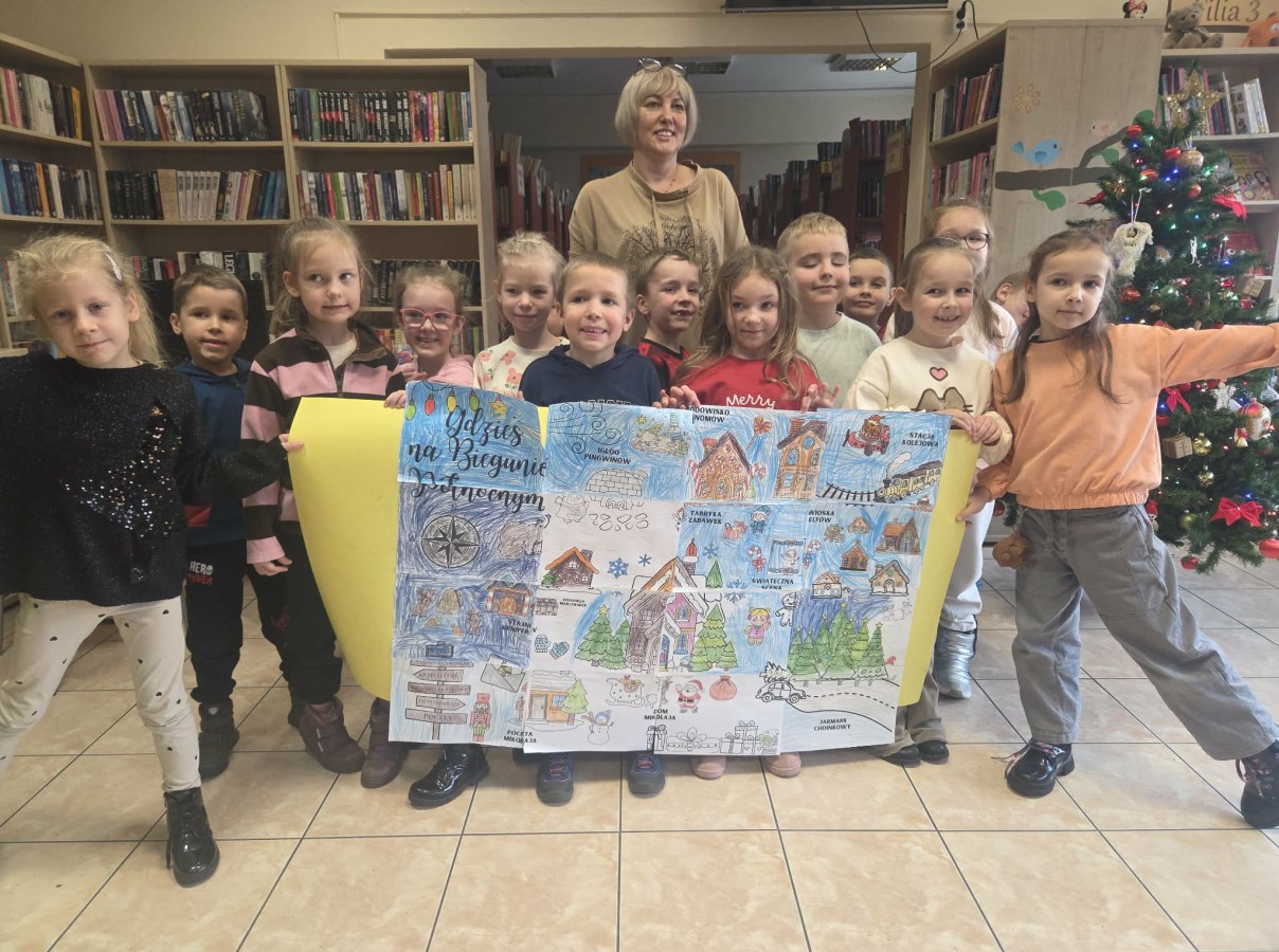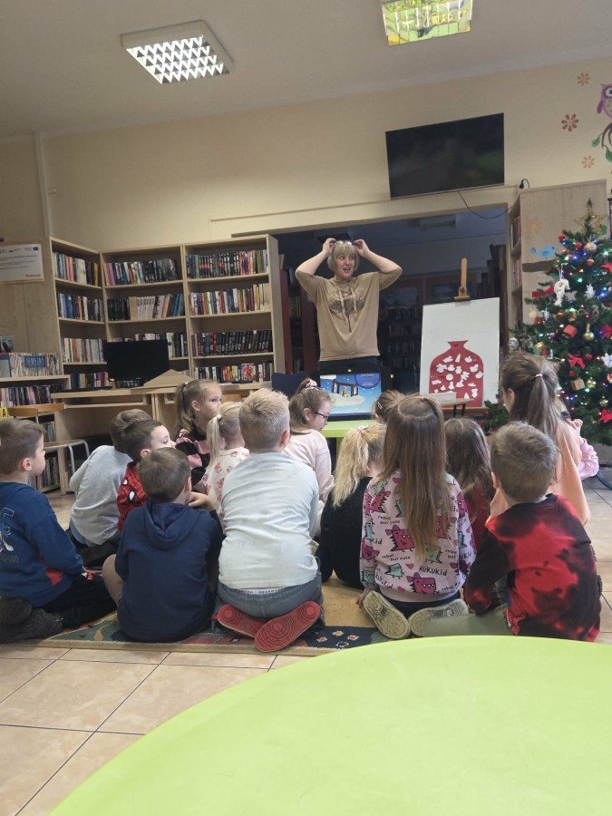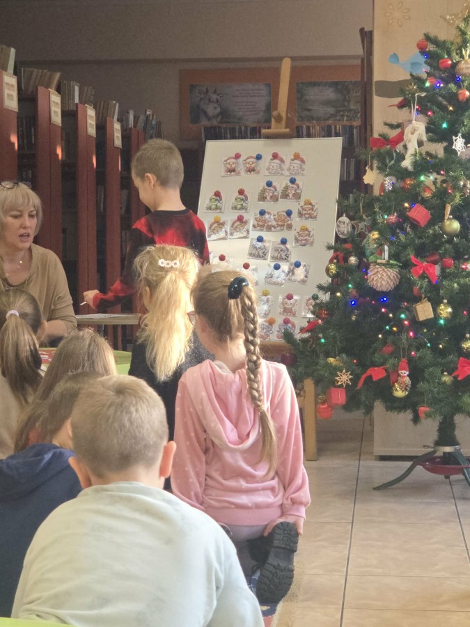 „Święta i zima w literaturze dla dzieci” to temat zajęć w Filii nr 3 Książnicy Płockiej, w których wzięły udział dzieci z naszej grupy 11 grudnia. Podczas spotkania poznały książki dla dzieci o zimowej i świątecznej tematyce. Największym zainteresowaniem cieszył się teatrzyk kamishibai, który wprowadził dzieci w magiczny, świąteczny nastrój. Przedszkolaki z uwagą słuchały opowiadania i oglądały ilustracje. Zajęcia przebiegały w radosnej atmosferze i były ciekawą okazją do rozwijania zainteresowań czytelniczych oraz wspólnego przeżywania zimowo-świątecznego klimatu.