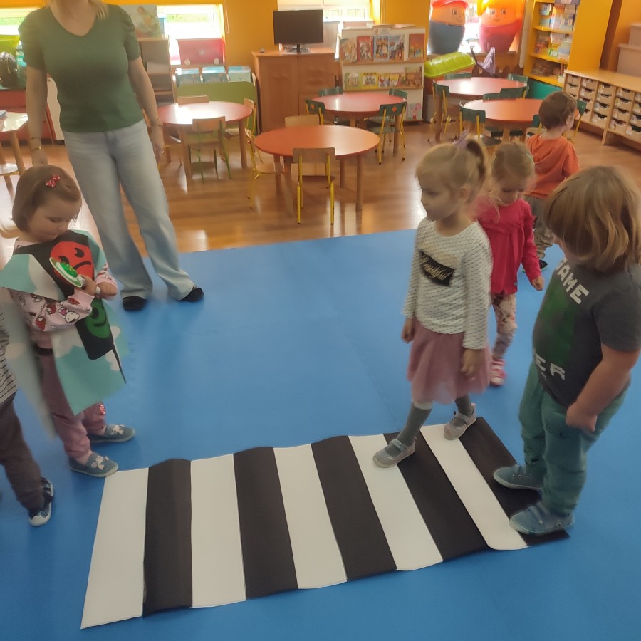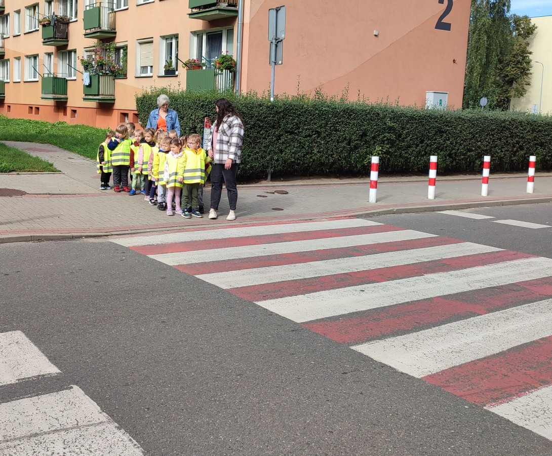 Dzieci poznały zasady prawidłowego poruszania się po chodniku, przechodzenia przez jezdnię oraz znaczenie sygnalizacji świetlnej.