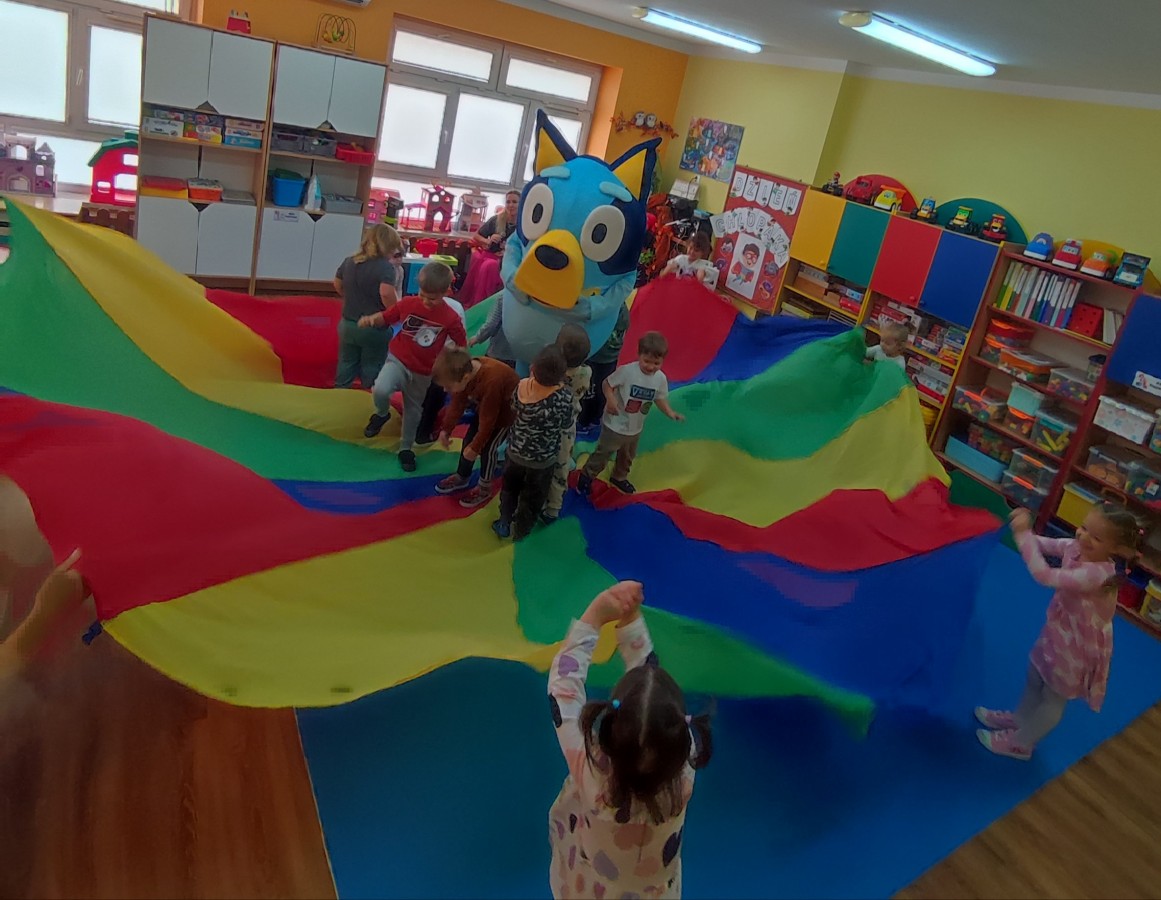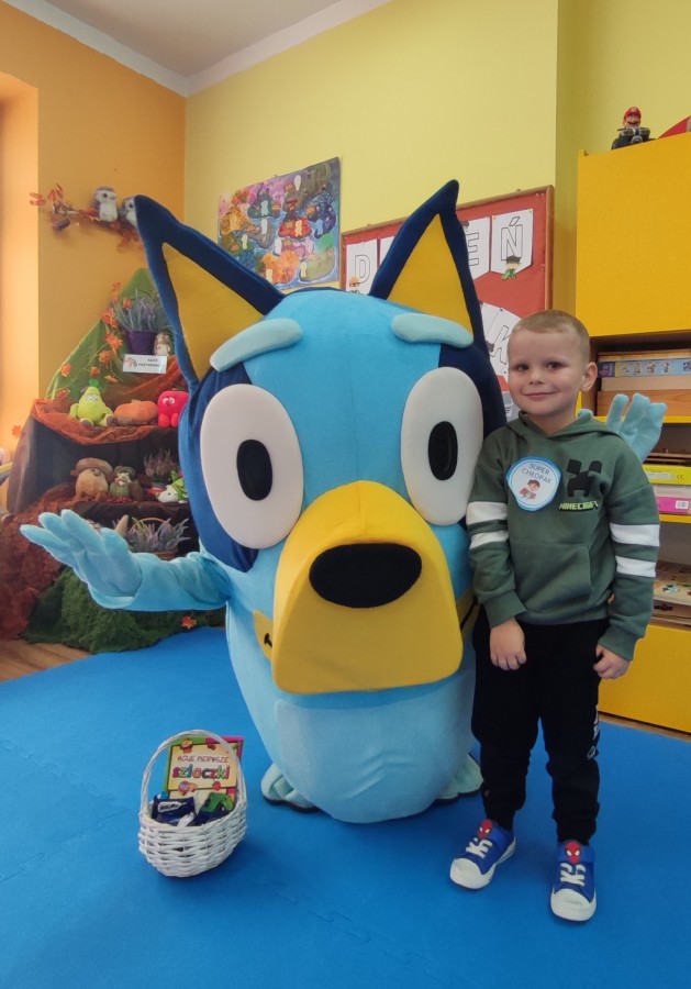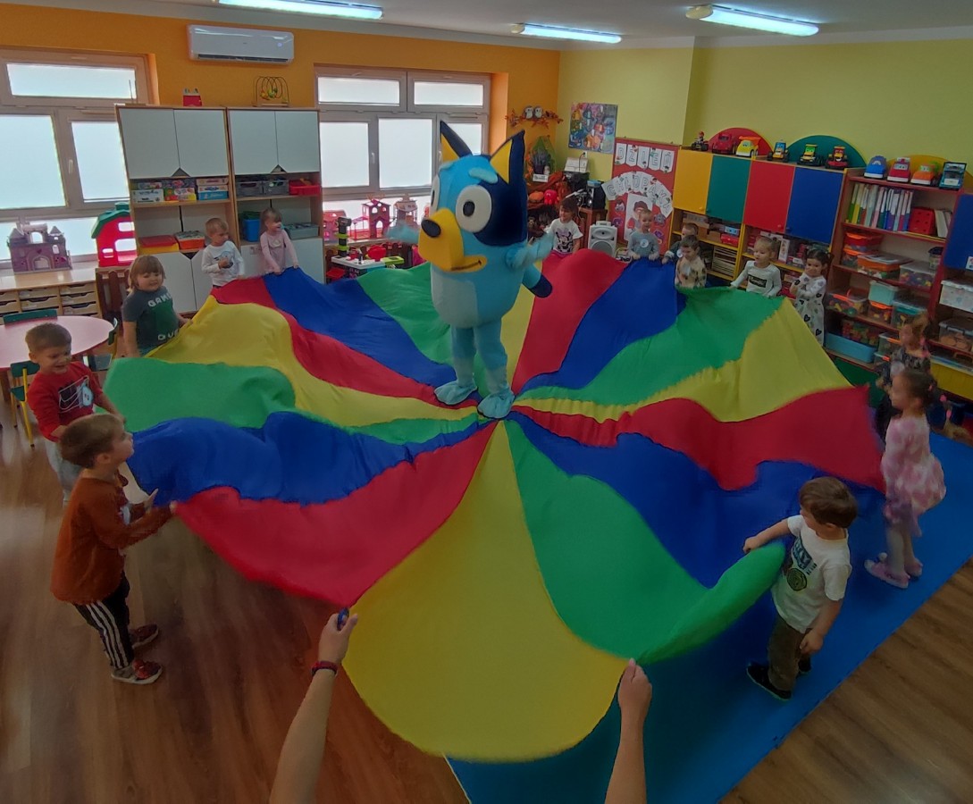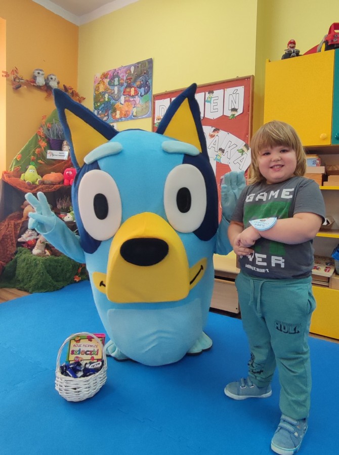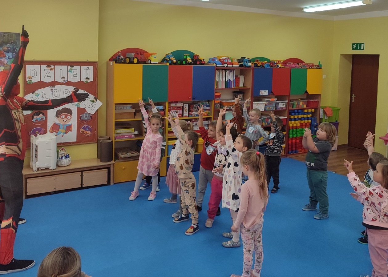 Gośćmi specjalnymi byli niezwykli bohaterowie – Spider-Man i Blue, którzy odwiedzili przedszkolaków, wywołując ogromną radość i zachwyt. Wspólne zabawy, tańce i konkursy sprawiły, że czas upłynął w atmosferze śmiechu i wspaniałej zabawy.