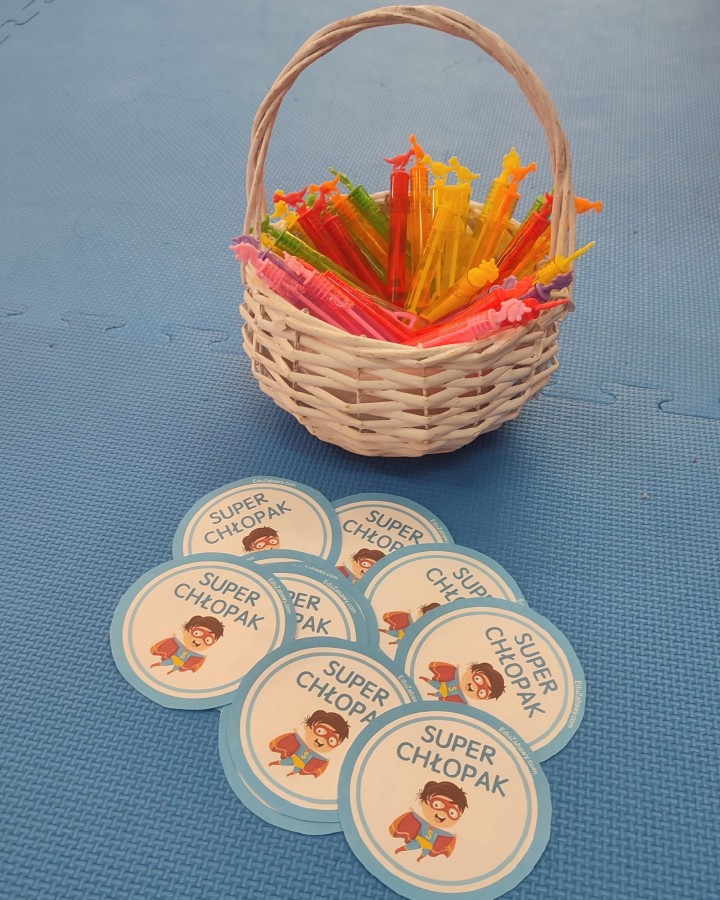 Każdy chłopiec otrzymał odznakę super chłopaka. Dodatkowo na chłopców i dziewczynki czekał upominek ufundowany przez rodziców, a nauczyciele zadbali o dodatkową niespodziankę w postaci kolorowych baniek mydlanych.