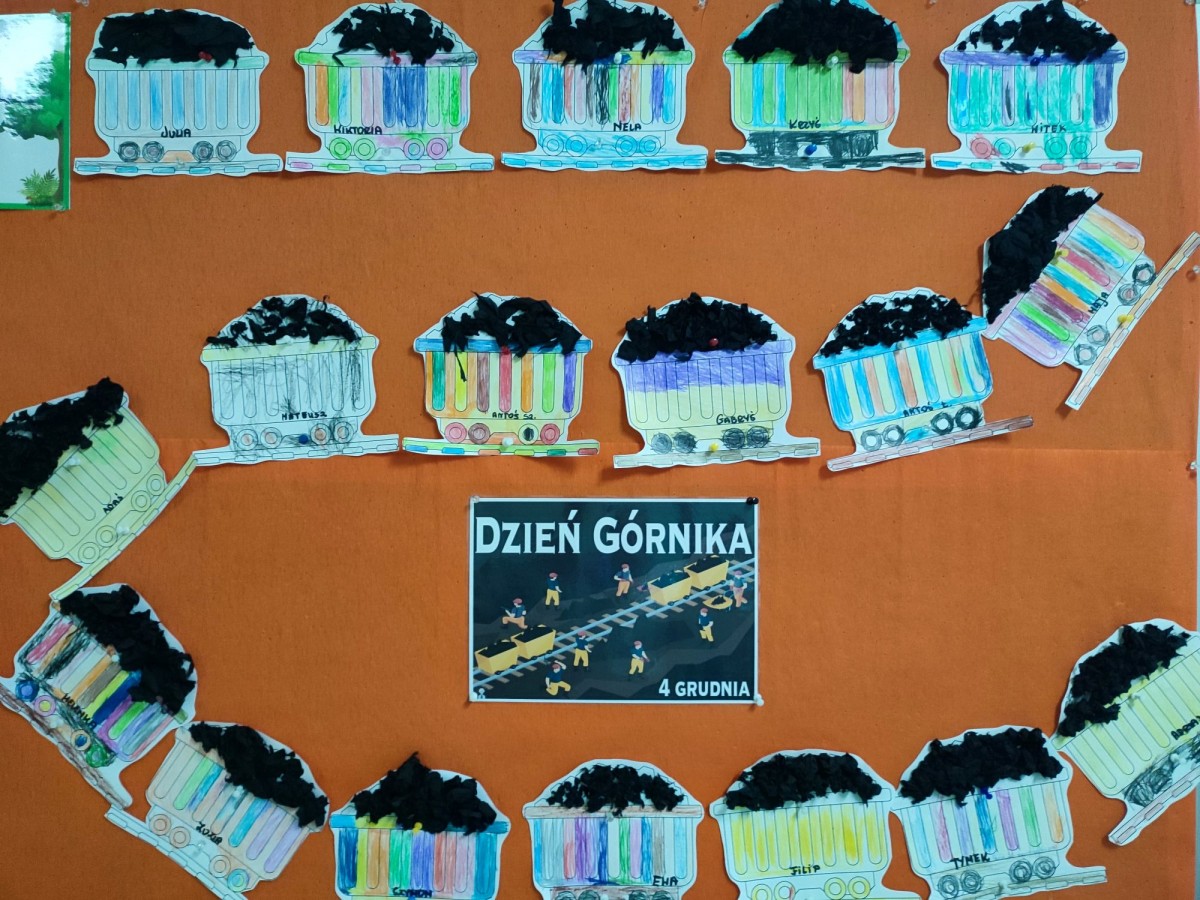 Z okazji Dnia Górnika 4 grudnia, nasze przedszkolaki wybrały się w fascynującą podróż do świata podziemnych skarbów. Dzieci poznały trudną i odpowiedzialną pracę górników, ich charakterystyczny strój oraz narzędzia, których używają w kopalni. Przedszkolaki z zainteresowaniem oglądały film edukacyjny o tym, skąd bierze się węgiel i dlaczego praca górników jest tak ważna dla wszystkich. Na zakończenie wspólnie wykonały pracę plastyczną- wagoniki z węglem.