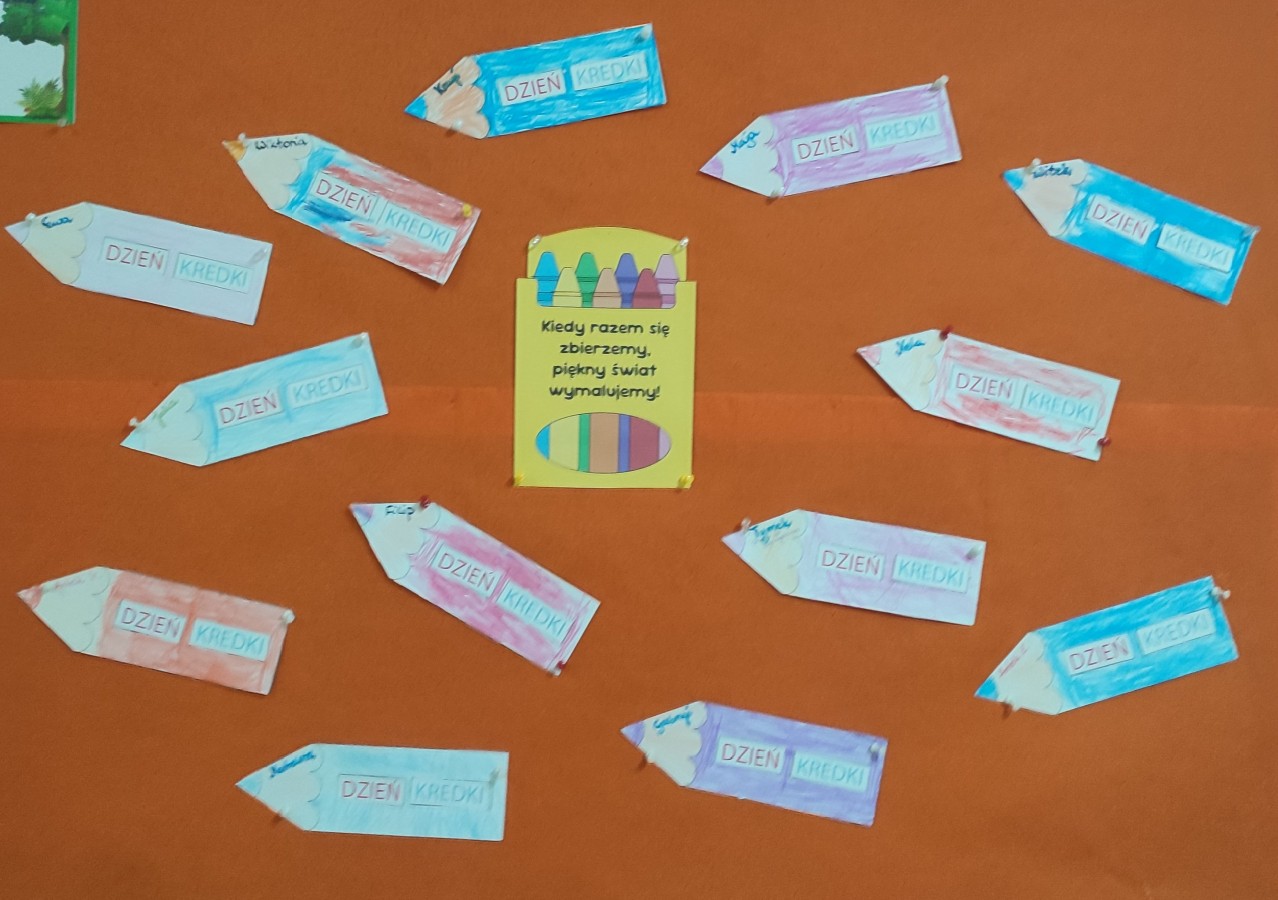 Dzieci poznawały różne rodzaje kredek, ich zastosowania oraz ciekawostki związane z powstawaniem kolorów. Przedszkolaki miały okazję rozwijać swoje zdolności plastyczne podczas rysowania. Prace dzieci ozdobiły tablice. Nie zabrakło również muzycznych oraz ruchowych aktywności związanych z kolorami. Dzień Kredki to nie tylko okazja do dobrej zabawy, ale także do rozwijania dużej i małej motoryki, kreatywności, spostrzegawczości oraz umiejętności współpracy.