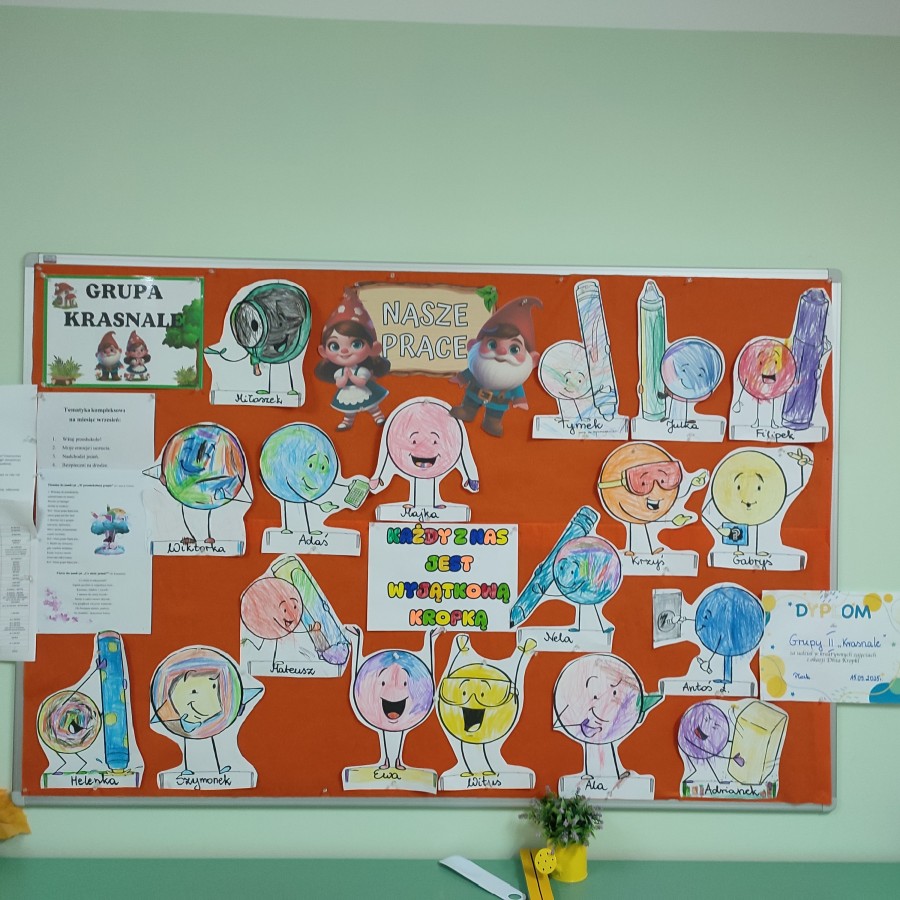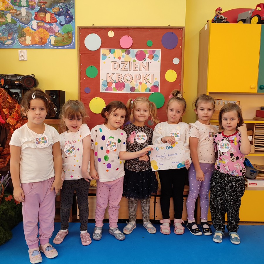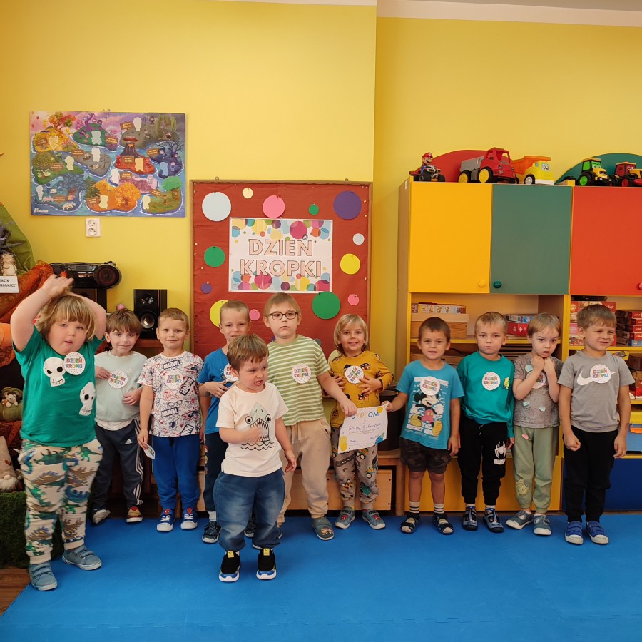 15 września w naszej grupie nie mogło zabraknąć obchodów "Dnia Kropki". Dzieci poznawały historię małej kropki, która zainspirowała cały świat do odkrywania swoich talentów i twórczego myślenia. Podczas zabaw przedszkolaki rozwijały wyobraźnię, ćwiczyły spostrzegawczość i uczyły się współpracy. Każde dziecko mogło pokazać, że jest wyjątkowe i że w każdym z nas kryje się coś niezwykłego. Dodatkowo każde dziecko wybierało swoją kropkę, którą według własnego pomysłu kolorowało. Na koniec każdy przedszkolak otrzymał odznakę "Dnia Kropki", natomiast cała grupa za aktywny udział w zajęciach edukacyjnych otrzymała dyplom. To był kolorowy dzień!