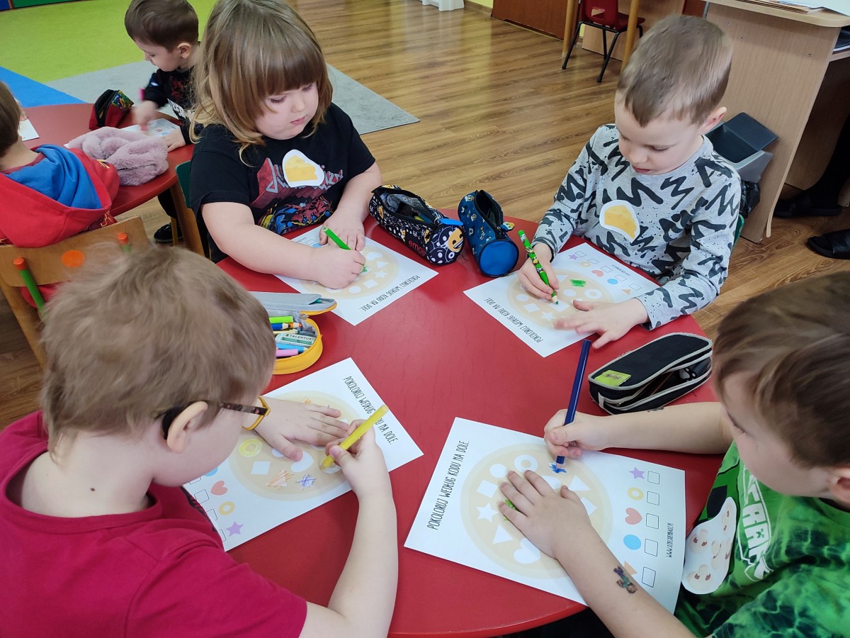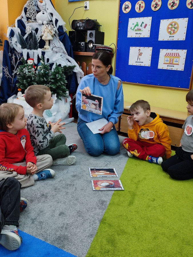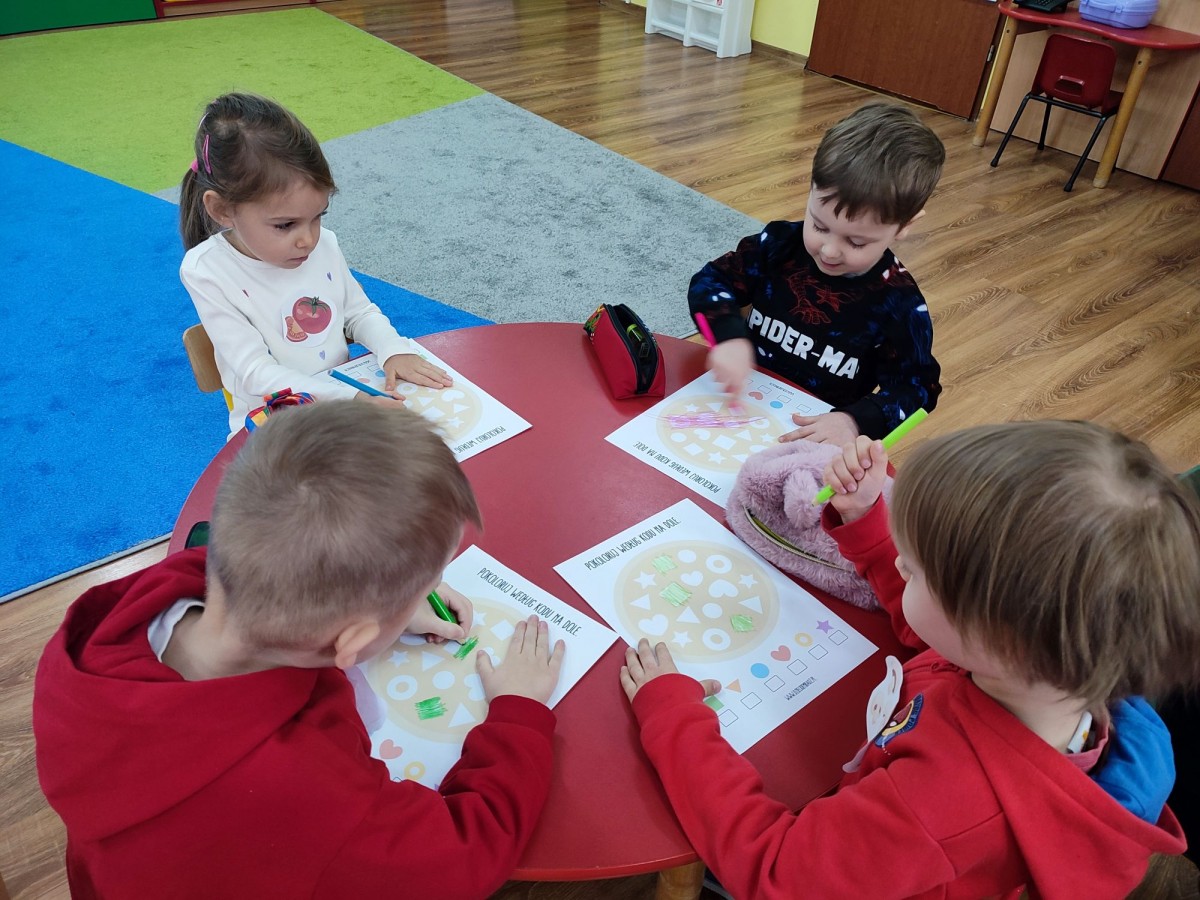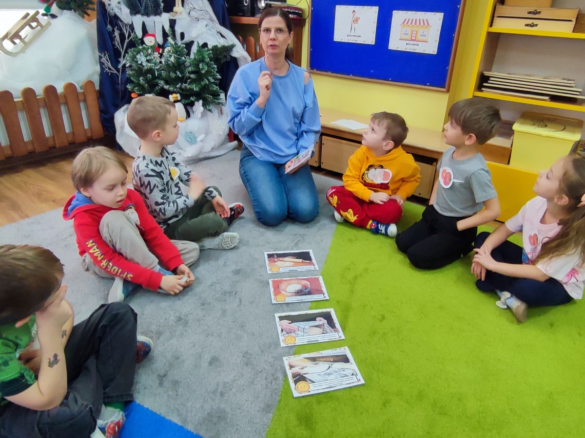 Podczas zajęć dzieci poznały również etapy przygotowania pizzy — od wyrabiania ciasta, przez dodawanie składników, aż po pieczenie. Rozmawialiśmy o tym, skąd pochodzą poszczególne produkty i jak powstaje to popularne danie. Dzień Pizzy okazał się pełen ruchu, wiedzy i świetnej zabawy.