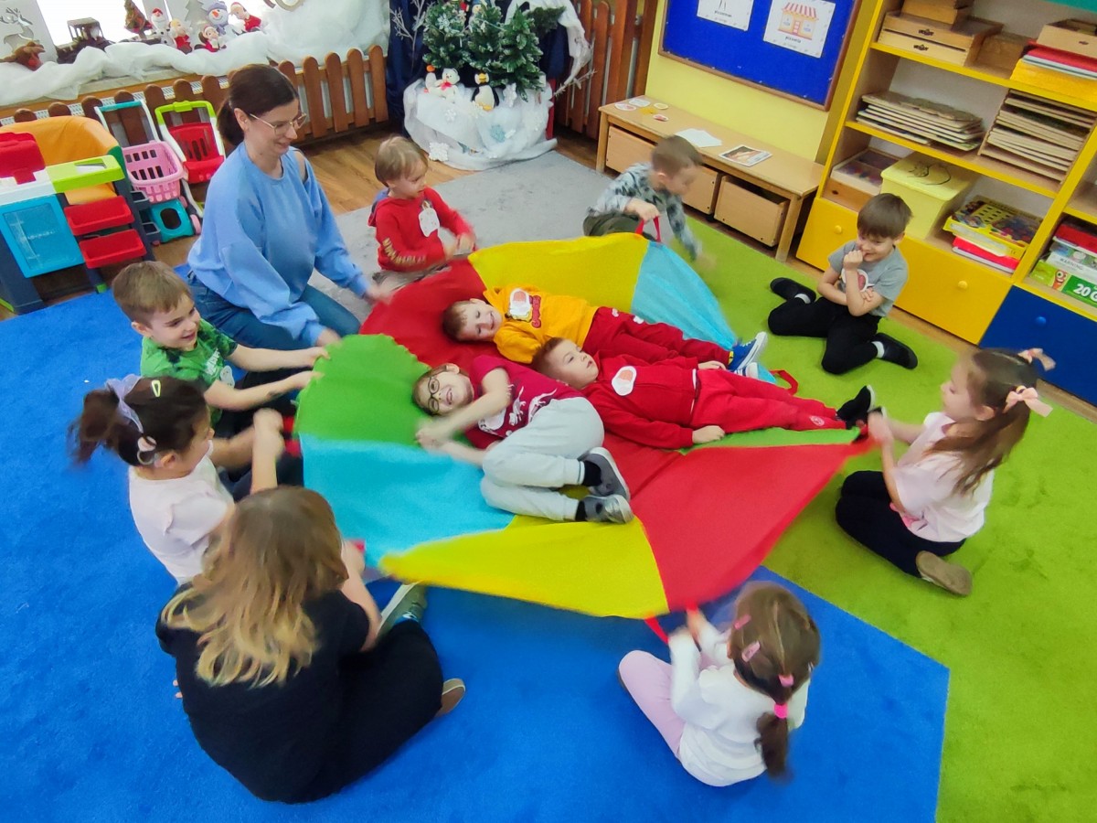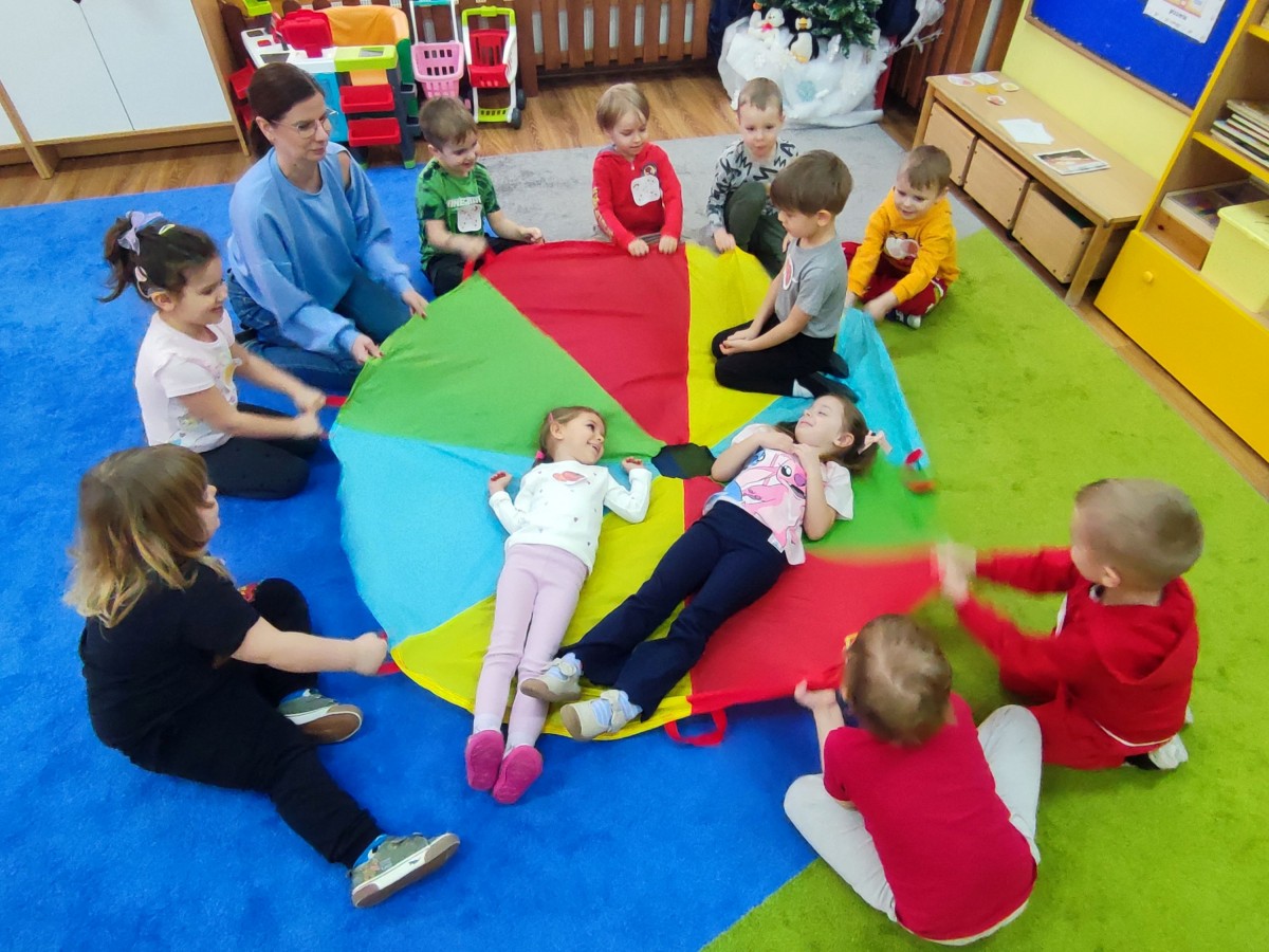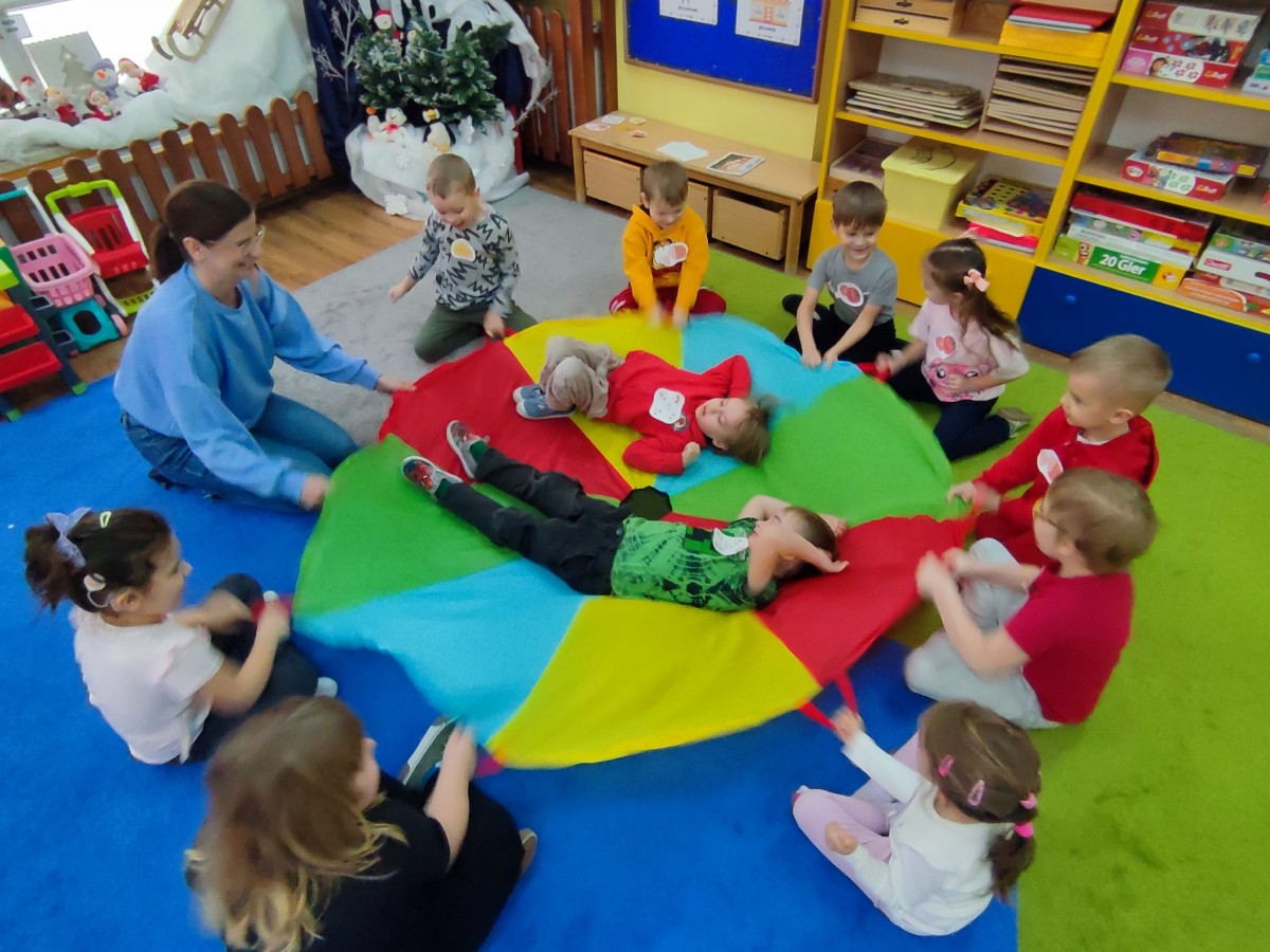 9 lutego w naszej grupie obchodziliśmy wyjątkowe i bardzo smakowite święto — Dzień Pizzy. Przedszkolaki uczestniczyły w zabawach ruchowych inspirowanych pizzą — były rolowanym ciastem, skakały jak „gorący ser”, a nawet wcielały się w różne składniki, tworząc wspólnie wielką, wesołą pizzę. Zabawy dostarczyły mnóstwo śmiechu i pozwoliły dzieciom poczuć się jak prawdziwi kucharze.