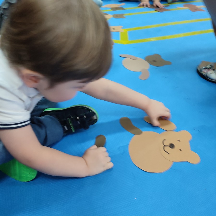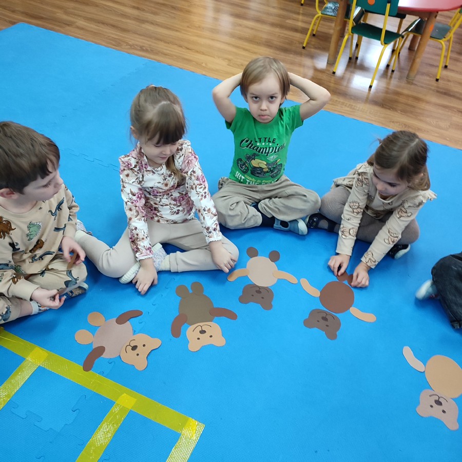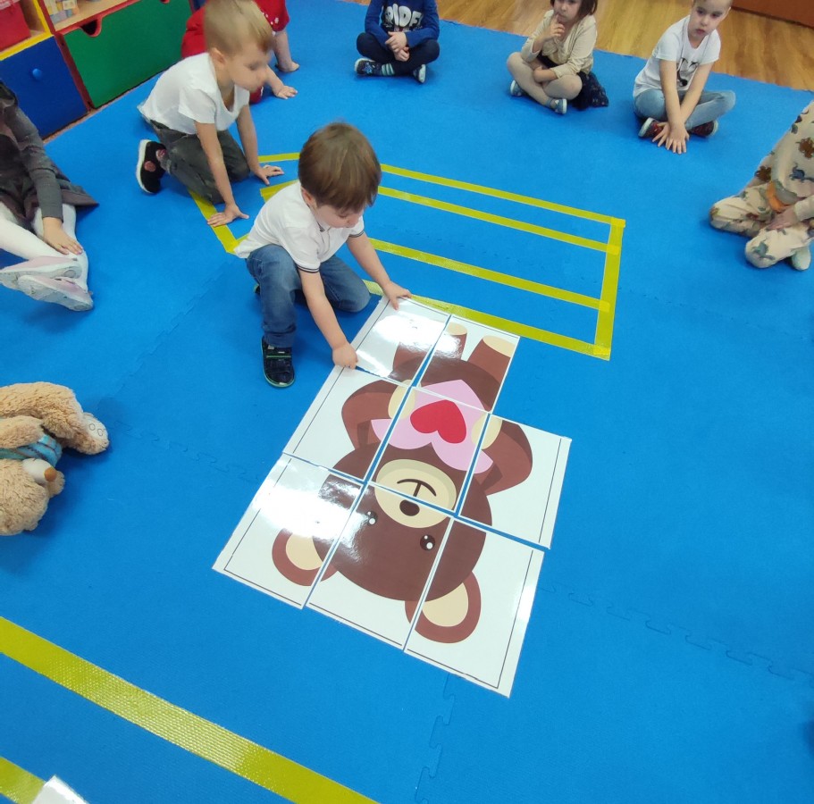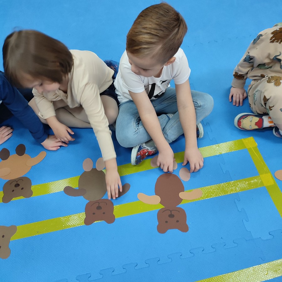 Przedszkolaki brały udział w misiowych zabawach, tańcach oraz konkurencjach ruchowych. Wspólnie poznawaliśmy historię pluszowego misia, a dzieci chętnie opowiadały o swoich ulubionych maskotkach.