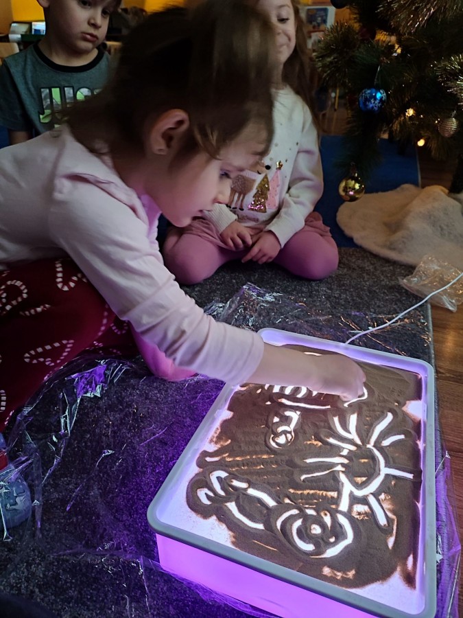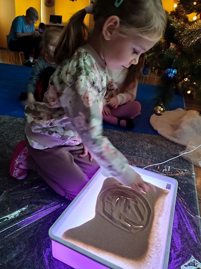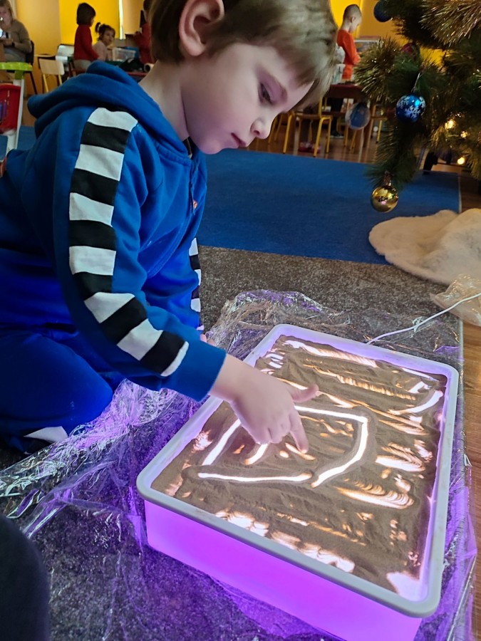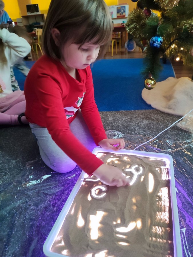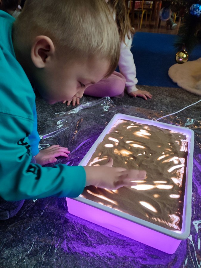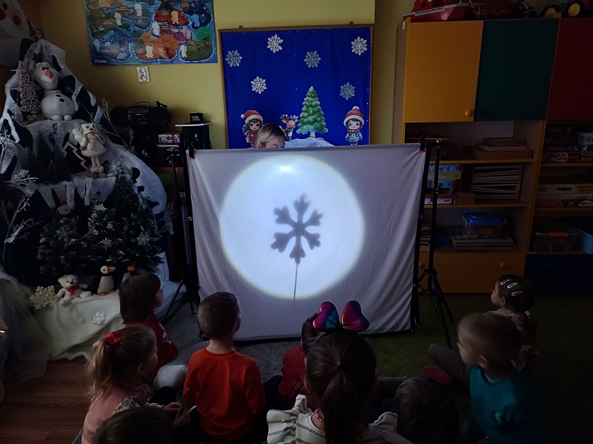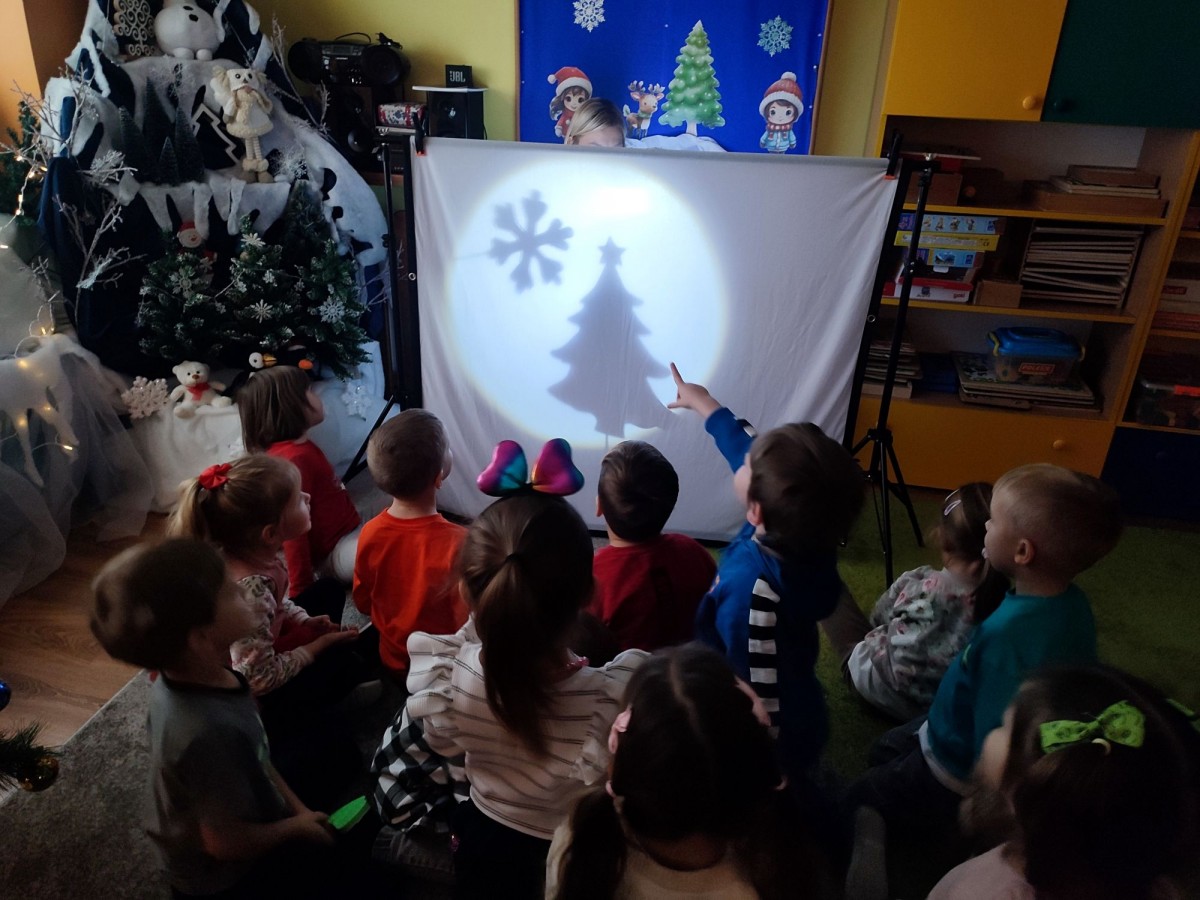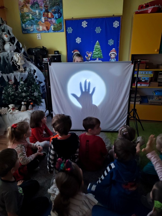 16 grudnia dzieci z grupy Krasnale wykonały kolejne zadanie w ramach realizacji projektu "Gramy zmysłami". Tym razem były to zimowe zabawy badawcze i sensoryczne z wykorzystaniem światła.