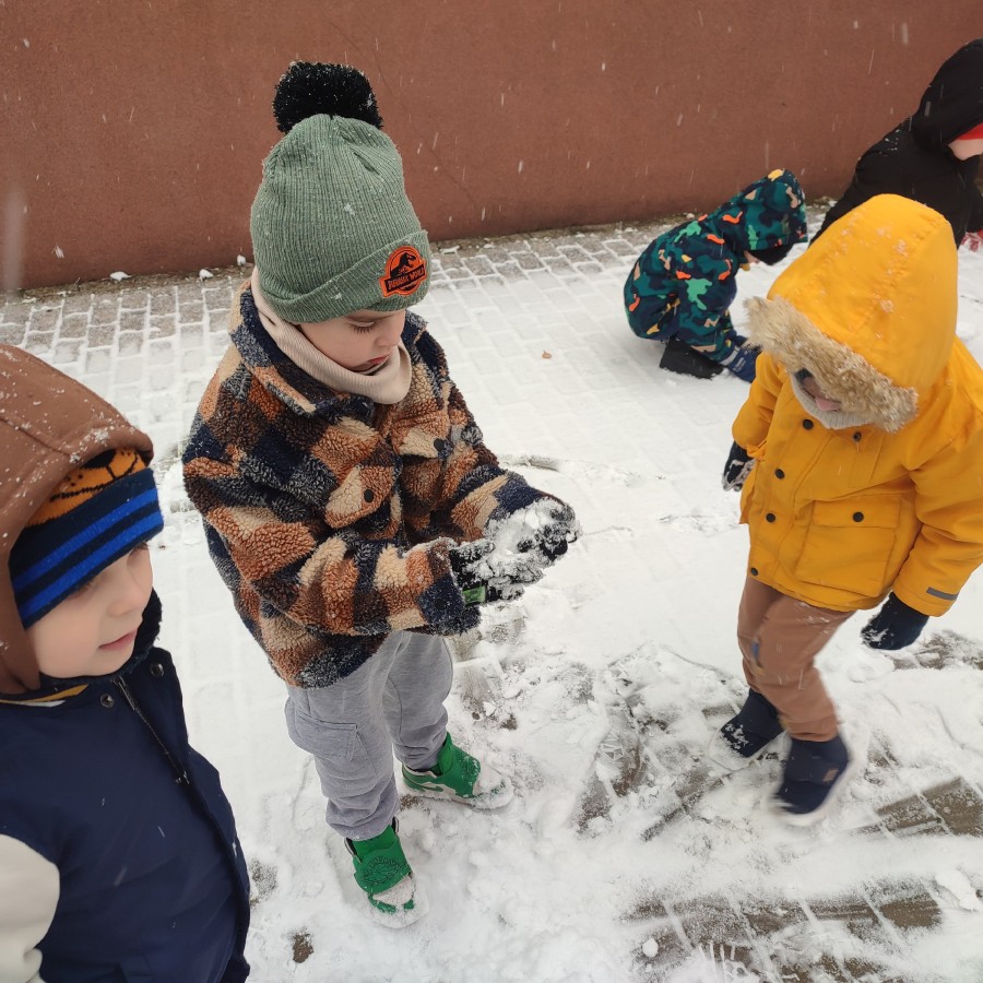 24 listopada dzieci z wielką radością przywitały pierwszy śnieg. Od rana w przedszkolnym ogrodzie słychać było śmiech i okrzyki zachwytu. Przedszkolaki lepiły swoje pierwsze w tym roku bałwany, robiły śnieżne kule, a także urządziły mini bitwy na śnieżki, oczywiście pod czujnym okiem nauczycieli. Zimowa aura dostarczyła wszystkim mnóstwo radości i niezapomnianych wrażeń. To był wyjątkowy dzień pełen zabawy na świeżym powietrzu – oby taka pogoda została z nami jak najdłużej!