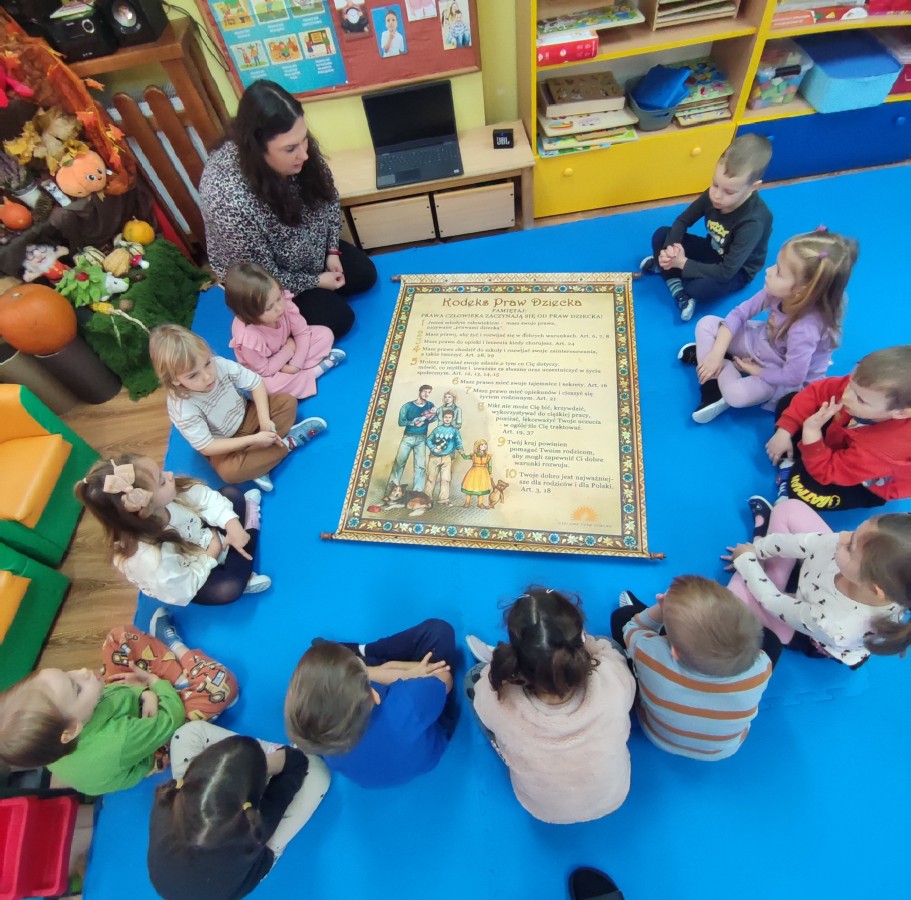 Podczas zajęć dzieci poznały najważniejsze Prawa Dziecka, omawiane w oparciu o Konwencję o Prawach Dziecka. Wydarzenie było częścią międzynarodowego projektu czytelniczego „Magiczna moc bajek”, który pomaga najmłodszym zrozumieć ważne treści poprzez opowieści i literaturę. Przedszkolaki obejrzały również edukacyjny film „Prawa Dziecka”, który w przystępny sposób wyjaśniał, jakie prawa posiadają wszystkie dzieci na świecie i dlaczego są one tak ważne. Zwieńczeniem dnia były zabawy muzyczno-ruchowe, podczas których dzieci aktywnie uczestniczyły w tańcach i śpiewie, poznając wesołą piosenkę o prawach dziecka. Za aktywny udział w zajęciach każde dziecko otrzymało odznakę, natomiast cała grupa otrzymała dyplom. Był to dzień pełen refleksji, radości i nauki – dzieci nie tylko dobrze się bawiły, ale także zdobyły wiedzę, która pomaga im lepiej rozumieć siebie i innych.