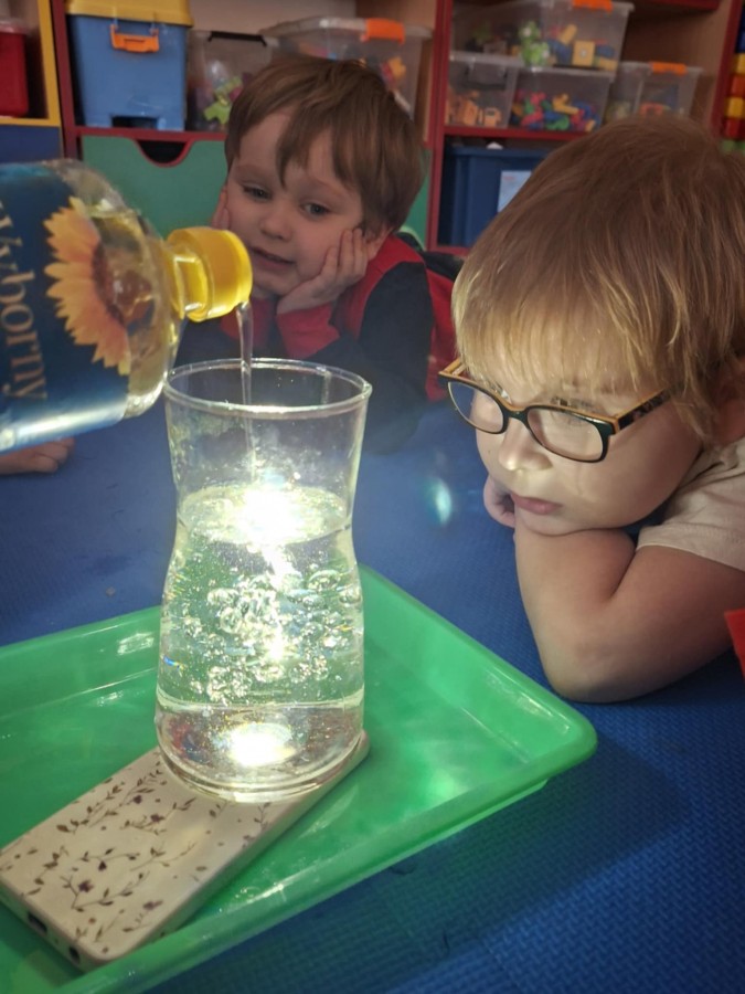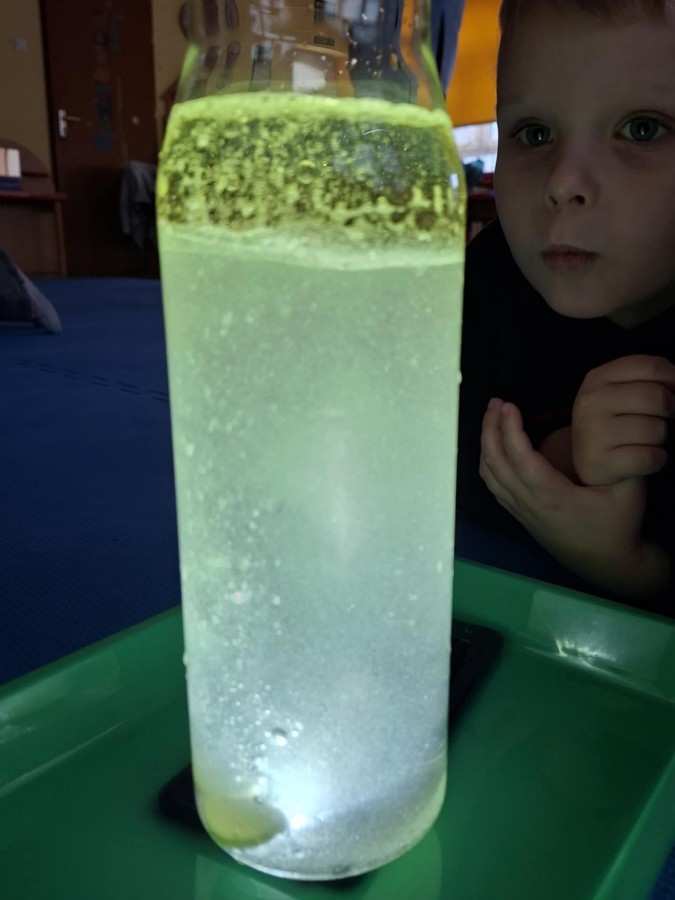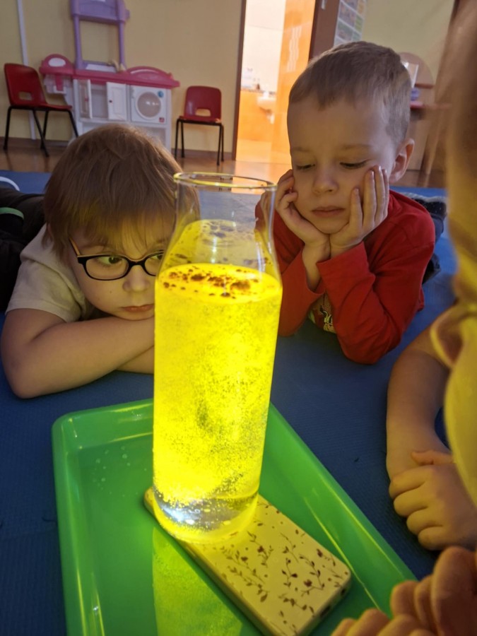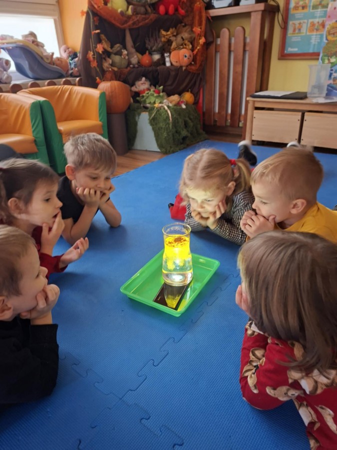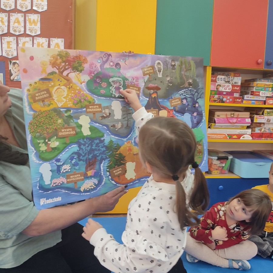 Podczas zajęć przedszkolaki zastanawiały się, czym właściwie jest zdziwienie, w jakich sytuacjach pojawia się w codziennym życiu oraz jak może wyglądać na twarzy. Dzieci brały udział w zabawach sensorycznych i ruchowych, dzięki którym mogły doświadczyć tej emocji w praktyce. Wspólnie tworzyły również krótkie scenki i odgrywały sytuacje, w których pojawia się zaskoczenie lub zdumienie. Dzieci mogły doświadczyć zdziwienia podczas obserwacji eksperymentów i zabaw badawczych. Na koniec zajęć przedszkolaki uzupełniły książeczkę projektową.