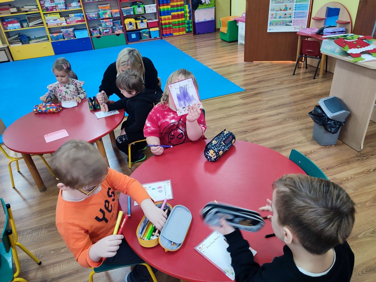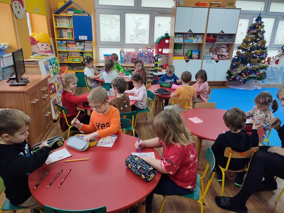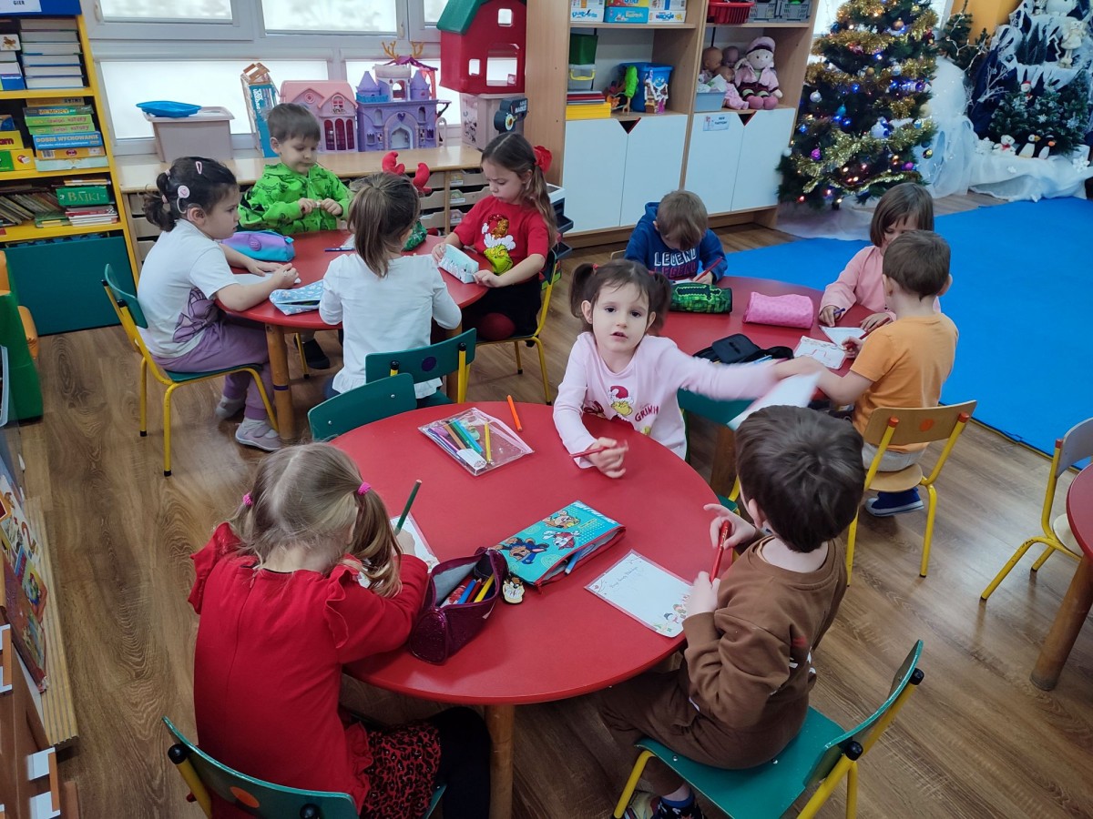 „Pocztowe Przygody”, to autorski program opracowany na rok szkolny 2025/2026 przygotowany we współpracy z Pocztą Polską i objęty patronatem honorowym Ministra Edukacji. W naszej grupie został zrealizowany scenariusz pt: " List do Świętego Mikołaja", podczas którego przedszkolaki stworzyły swoje wyjątkowe, świąteczne listy do Mikołaja. Towarzyszyła temu opowieść o Rovaniemi oraz niezwykłej drodze, jaką przebywają listy w międzynarodowym obiegu.