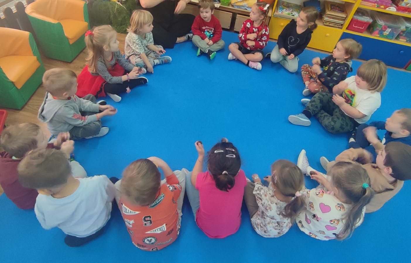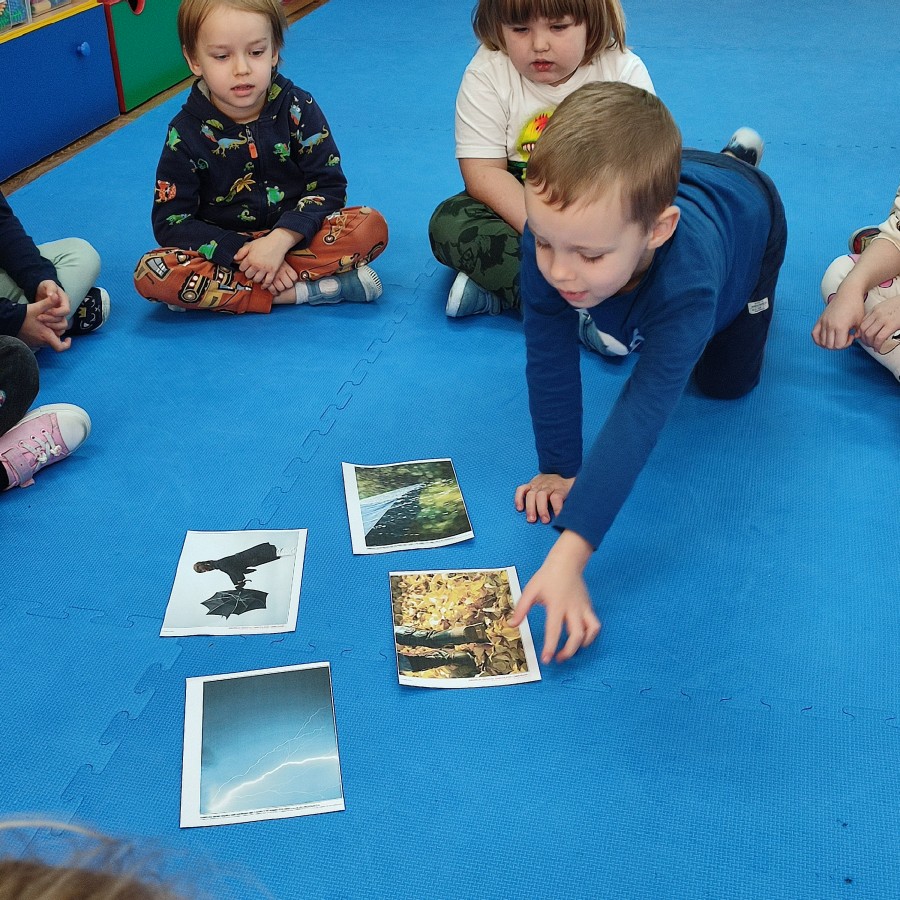 Podczas zajęć przedszkolaki wsłuchiwały się w dźwięki jesieni – szelest liści, śpiew ptaków, szum wiatru – ucząc się uważnego słuchania i odkrywania piękna otaczającej przyrody. Dodatkowo dzieci uczestniczyły w zabawach rytmicznych z wykorzystaniem kasztanów. To było wyjątkowe, sensoryczne doświadczenie, które pozwoliło dzieciom poznać jesień wszystkimi zmysłami.