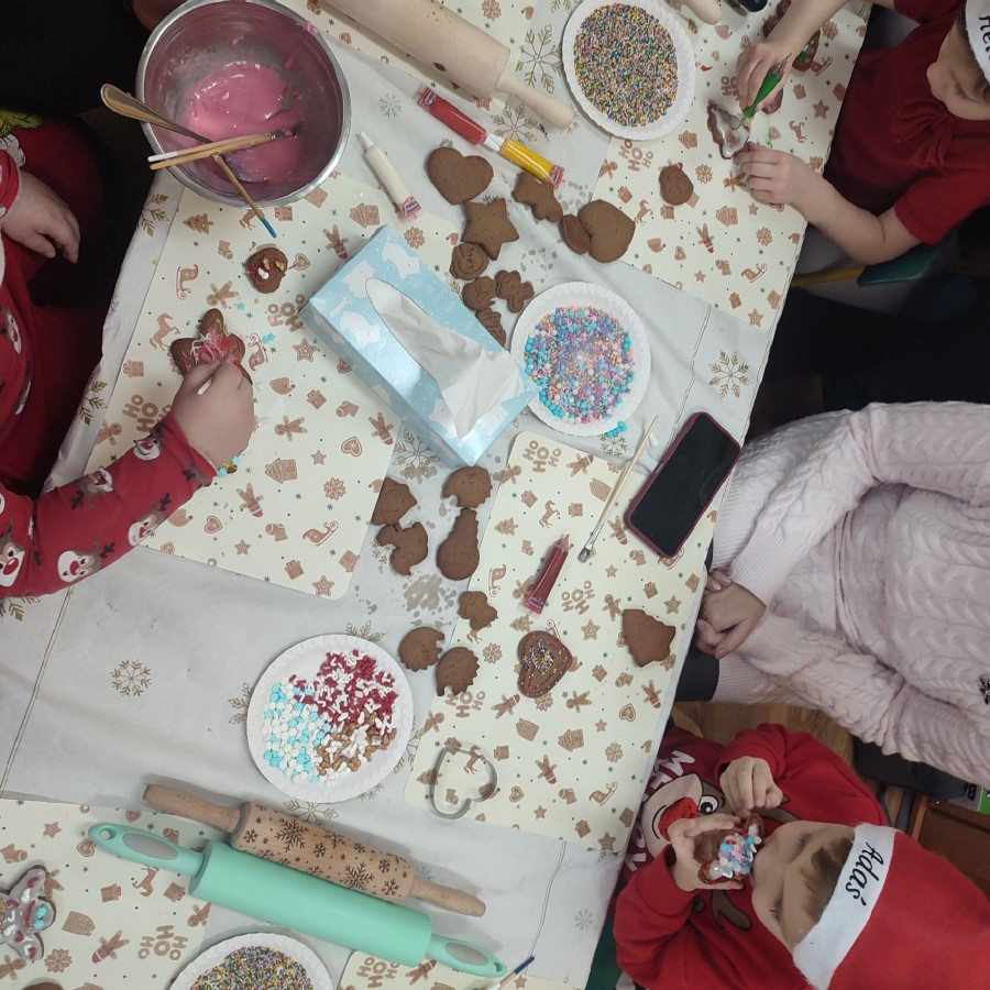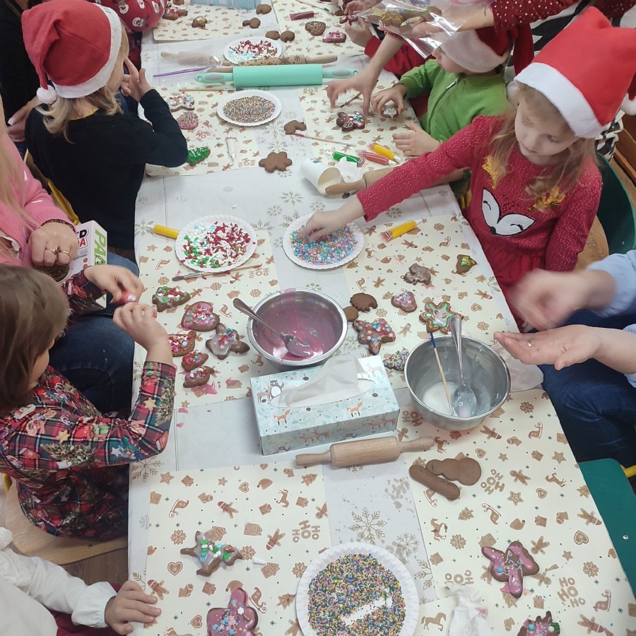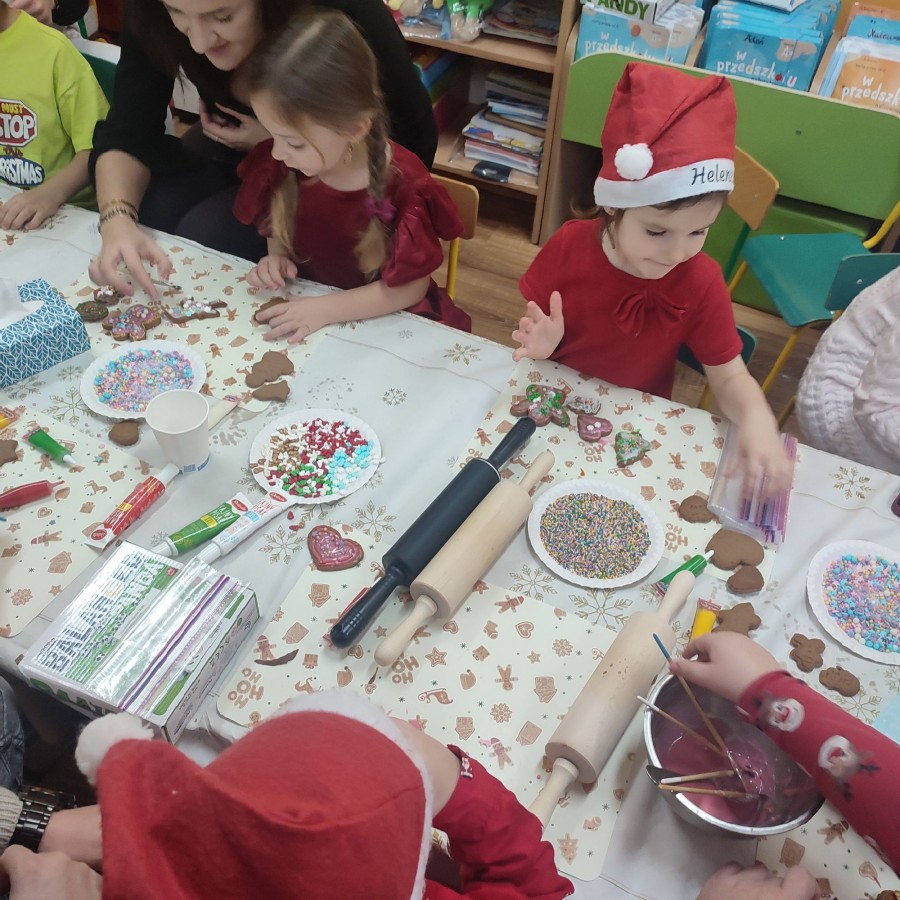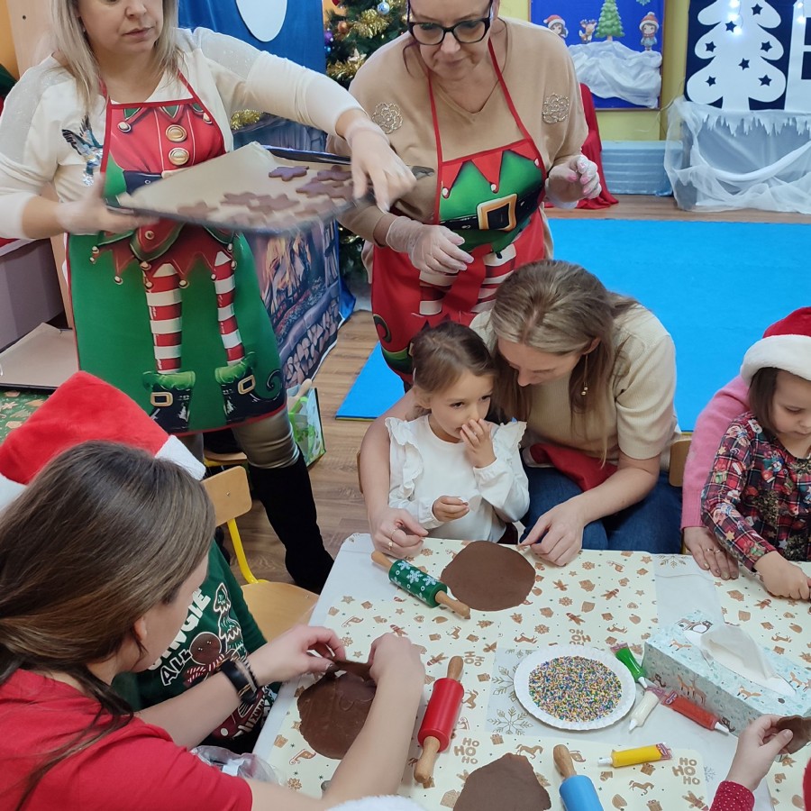 12 grudnia w naszej grupie odbyły się Świąteczne Warsztaty z udziałem rodziców, które poprowadziły panie ze Stowarzyszenia Lawendowy Kociołek. Było pieczenie i dekorowanie pierniczków, występ przygotowany przez dzieci specjalnie dla rodziców oraz spotkanie z Mikołajem. Wspólna praca przy piernikach oraz śpiew i zabawy nie tylko wprowadziły uczestników w świąteczny nastrój, ale także pozwoliły na zbliżenie się do siebie i spędzenie wyjątkowego czasu w rodzinnym gronie. To były niezapomniane chwile pełne śmiechu, kreatywności i miłości, które na długo pozostaną w sercach uczestników.