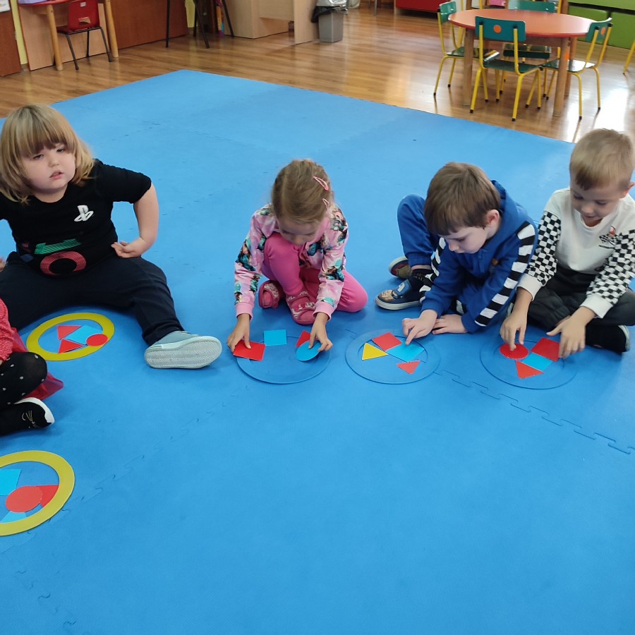 13 listopada w naszej grupie odbyły się zajęcia edukacyjne realizowane w ramach ogólnopolskiego projektu „Kreatywna Matematyka”. Podczas zajęć dzieci w ciekawy i aktywny sposób poznawały świat figur geometrycznych. Przedszkolaki rozpoznawały i nazywały różne figury, układały z nich rozmaite przedmioty i kompozycje, tworzyły kreatywne rysunki z wykorzystaniem koła. Dzieci brały również udział w terenowej zabawie „Poszukiwanie figur”, która dostarczyła im mnóstwo radości i emocji. Zajęcia rozwijały wyobraźnię przestrzenną, spostrzegawczość oraz umiejętność współpracy. Dzieci przekonały się, że matematyka może być nie tylko nauką, ale także świetną zabawą!