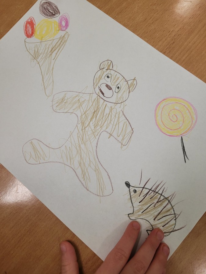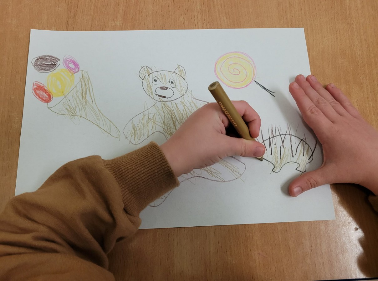 2 grudnia realizowane były zajęcia pt. "Co czuję, widzę, słyszę" kształtujące umiejętności codziennej praktyki uważności rozwijającej wszystkie zmysły. Dzieci analizowały materiał obrazkowy i określały jakimi zmysłami: wzrok, słuch, dotyk, węch, smak rozpoznają cechy przedmiotów przedstawionych na obrazkach. Następnie rysowały najbardziej lubiane przez siebie przedmioty.