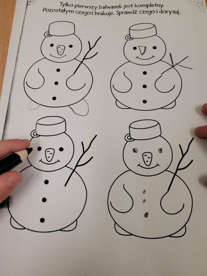 16 grudnia dzieci ćwiczyły swoją uważność spostrzegając różnice i brakujące elementy na obrazkach.
