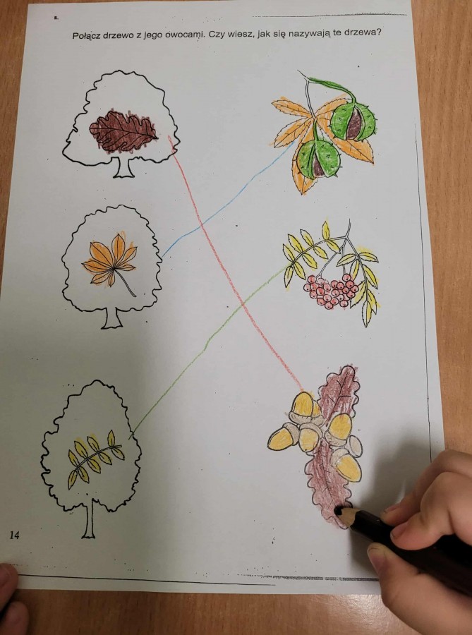 10 października na zajęciach logopedycznych obchodziliśmy "Dzień drzewa". Dzieci poznały znaczenie drzew dla życia na Ziemi. Poznały też różne gatunki drzew rosnących w lesie i ich owoce oraz spostrzegały różnice na dwóch obrazkach pozornie identycznych. Kolorowały obrazki wg posiadanej wiedzy. Zapoznały się z zawodem leśnika.