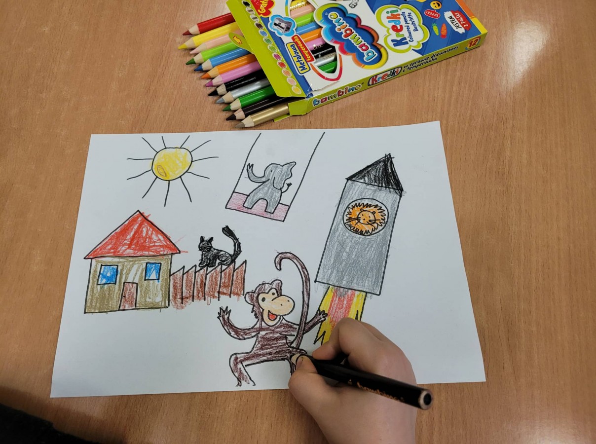 21 listopada obchodziliśmy " Dzień kredki". Dzieci słuchały piosenki pt. " Kolorowe kredki". Analizowały jej treść i utrwalały kolory. Dzieci starsze rysowały treść piosenki, a młodsze kolorowały kontury obrazka. Zadaniem głównym było dorysować do obrazka brakujący element z treści piosenki.