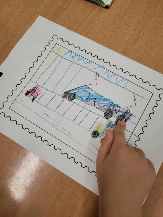 17 października obchodziliśmy "Dzień poczty polskiej- czyli dzień listonosza". Dzieci poznały pracę listonosza w oparciu o historyjkę obrazkową pt. "Droga listu". Dzieci starsze czytały zdania i dopasowywały je do obrazków. Uczyły się też spostrzegania rymów i utrwalały kierunki: na prawo, na lewo. Wszyscy chętnie projektowali znaczki pocztowe.
