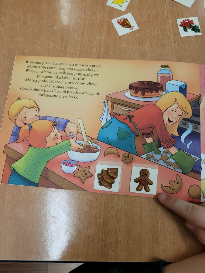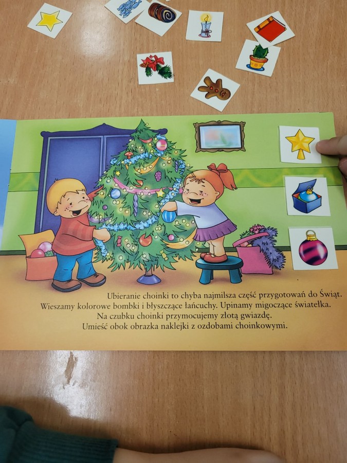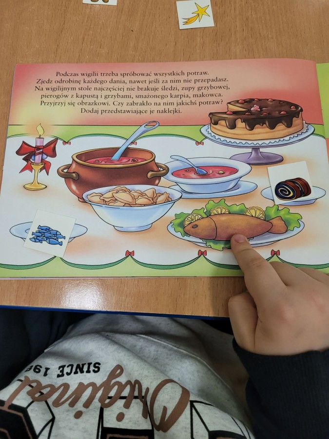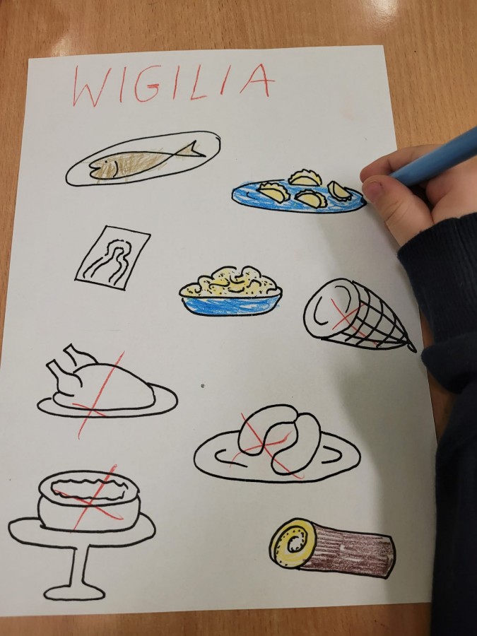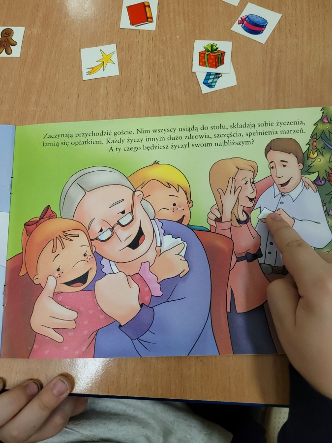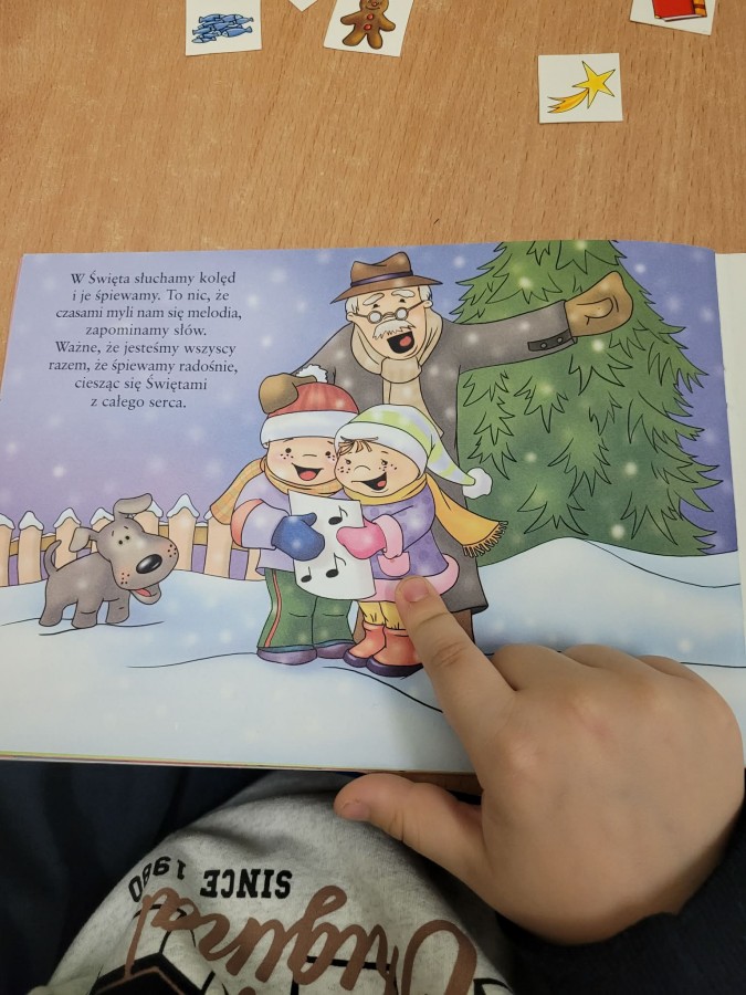 19 grudnia dzieci słuchały opowiadania dotyczącego "Wigilijnych Tradycji". Zapoznały się z Wigilijnymi potrawami, obrzędem łamania się opłatkiem i śpiewania kolęd.